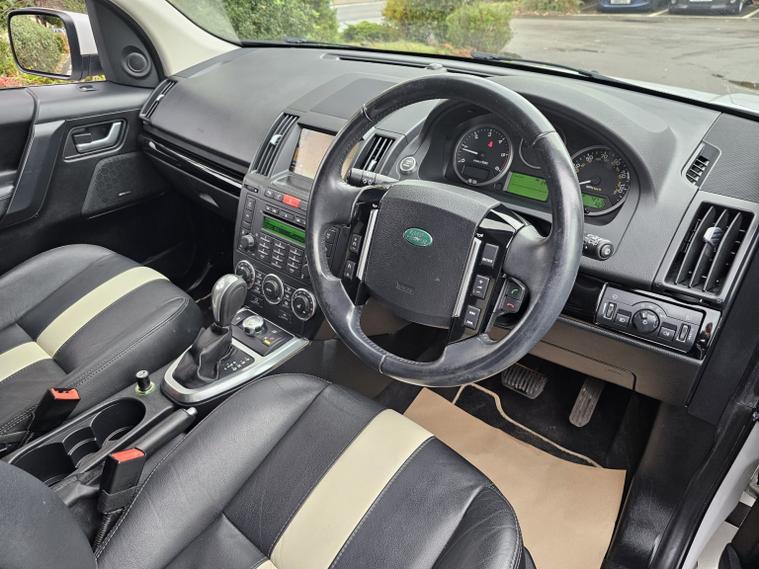A 2011 LAND ROVER FREELANDER 2, specifically a 2.2 SD4 Sport LE Automatic, finished in white. This vehicle has a remarkably low mileage of only 73, 000 miles from new. It boasts an array of top-spec features, including satellite navigation, a multimedia system, Alpine sound system, phone connection, parking radar, heated front seats, and 4x4 all-terrain settings, amongst others.This car presents itself in best color white with a black leather interior. A very comfortable car that is a pleasure to drive, offering plenty of space throughout and a generous amount of boot space, making it highly practical with many potential uses.This LAND ROVER FREELANDER 2 comes complete with a comprehensive service history. Recently, it has undergone a full service, including a new cambelt and water pump service, and has been fitted with a brand new set of tyres. New rear discs and pads. The vehicle is supplied with two keys and benefits from a 6-month warranty. It has been thoroughly valeted and is ready to drive away.We invite interested parties to call 01202902921 today to arrange a viewing of this exceptional vehicle. With its impressive specification, low mileage, and excellent condition.