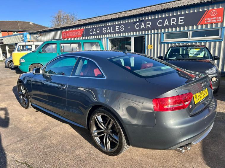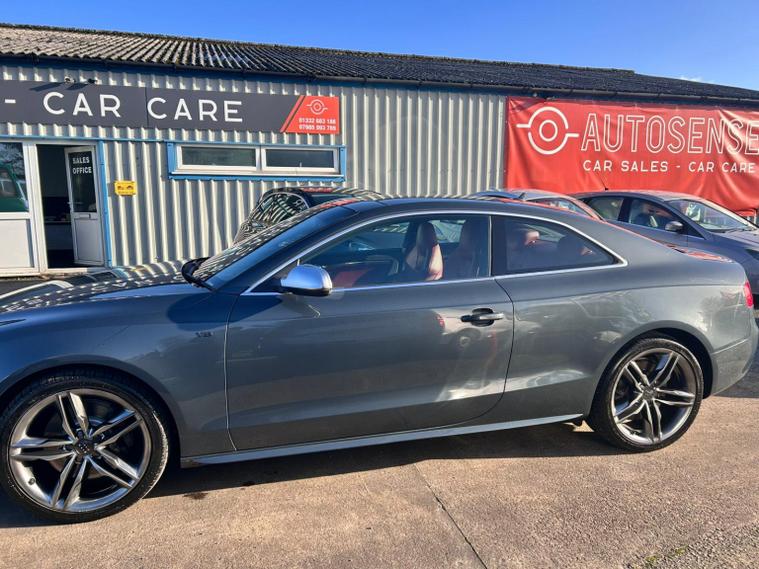 OPEN 6 DAYS A WEEK SUNDAY BY APPOINTMENT ONLY. ** MILLTEK EXHAUST, NEW CLUTCH AND DUAL MASS FLYWHEEL 500 MILES AGO, NEW STARTER MOTOR**, WE ARE PLEASED TO OFFER FOR SALE THIS STUNNING AUDI S5 V8 QUATTRO FINISHED IN A METEOR GREY PEARL EXTERIOR WITH A VIBRANT RED NAPPA LEATHER INTERIOR. THIS CAR COMES STOCK WITH 344 BHP, FULL SERVICE HISTORY, BRAND NEW BRAKES ALL AROUND, CRUISE CONTROL, FRONT HEATED SEATS, BANG & OLUFSEN SPEAKER SYSTEM, REAR PARKING SENSORS, SUNROOF, 6 SPEED MANUAL GEARBOX, LOW OWNERS, ELECTRIC MEMEORY SEATS, 19 INCH SPORT ALLOYS, FOG LIGHTS AND MUCH MORE. AUDI S5 LOCATED IN DERBY, DERBYSHIRE.