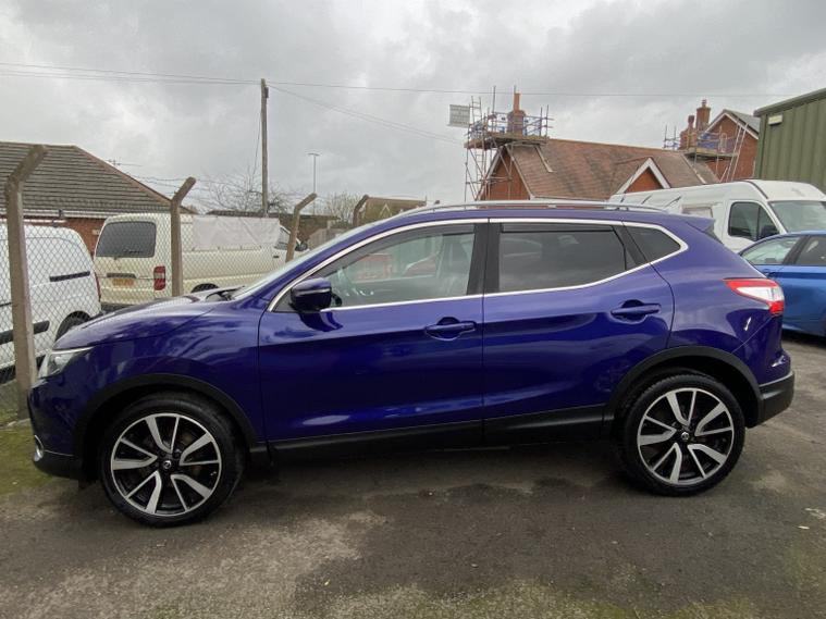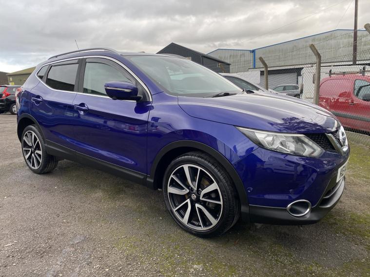 Nissan Qashqai 1.5 DCi Tekna 5 door MPV in Metallic Ink Blue, Part exchange to clear No warranty is available on this car because it falls outside my warranty mileage limit, Economical to run with fuel consumption figures of 74.3 miles to the gallon combined and 67.3 urban and only 20 road tax, 153711 miles with a comprehensive service history including a new cambelt in February this year. The car has just been serviced with a new MoT, High specification includes a full length glass roof with an electric sun blind - Full black leather upholstery - Heated front seats - Electric drivers seat -Satellite Navigation - Nissan Connect - Telephone - Bluetooth Integration - 7 Colour Touch Screen - Park assist with front and rear cameras and sensors - Dual zone climate control - Cruise control - Trip computer Alloy wheels - Electric front and rear windows - Automatic lights and windscreen wipers - Remote central locking with 2 keys - RDS CD Radio with usb and auxiliary ports Dual height load area with flat folding rear seats and a long list of driver assistance and safety features, Excellent condition inside and out and drives very well, Only 3150, Part exchange to clear