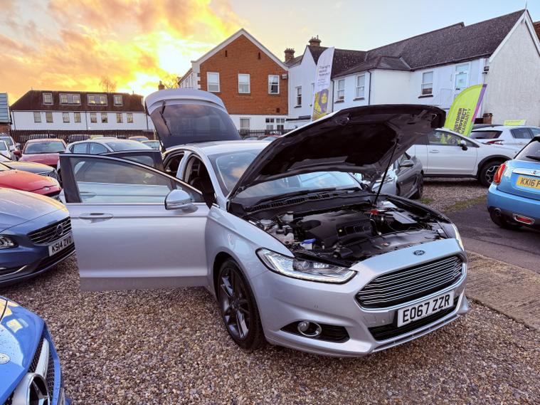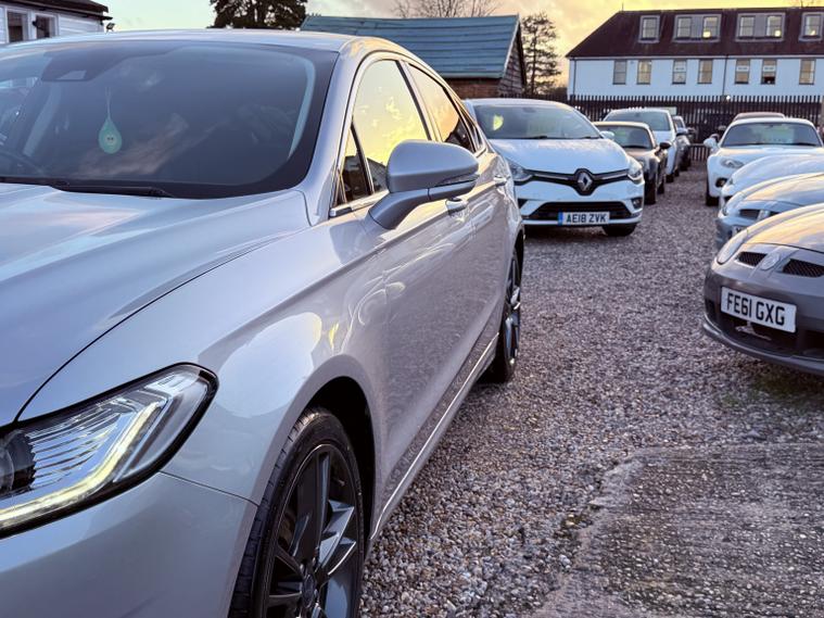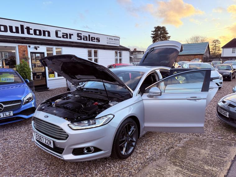 Great Value 2017 (67) Ford Mondeo Titanium, ULEZ Compliant 2.0 Turbo Diesel, 6 Speed Manual, 5 Door Hatchback, Finished In Metallic Silver With Contrasting Graphite Alloy Wheels, Big Spec Including Full Black Leather Interior With Heated Front Seats Plus Electric Adjustment With Memory Function For The Driver, Upgraded Sony Sync Toch Screen DAB Radio With USB Connectivity & 12 Speakers, Sat Nav, Bluetooth, Twin Zone Climate Control, Heated Front & Rear Windscreens, Automatic Lights & Wipers, Cruise Control, Lane Departure Warning With Lane Keep Assist, Electric Power Fold Door Mirrors, Front & Rear Electric Windows, Rear Privacy Glass, Front & Rear Parking Sensors With Reversing Camera, Full Adaptive LED Headlamps With Auto High Beam & LED Day Time Running Lamps, Keyless Entry & Push Button Start, Optional Boot Spoiler & 19 Inch Alloy Wheels, Spare Wheel & More, Service History, Long MOT With All Advisory Items Rectified (Expires 28/09/2026), New Front Brake Pads, New Windscreen Just Fitted, Same Owner Since 23/12/2021, Supplied With 2 Keys & Owners Manuals, 3 Months Engine And Drivetrain Warranty With Options To Extend, ULEZ Compliant, Finance Available, HPI Clear, AA Approved Dealer, 12 Months Breakdown Cover Free Of Charge, Driveaway Insurance Available, All Of Our Cars Are Supplied With A Workshop Inspection Including MOT & Service If Required Plus A Full Valet, Debit Card Payments Accepted, FCA Regulated Dealer, No Admin Fees, Part Exchange Welcome, Delivery Can Be Arranged For An Additional Fee, Sunday Viewings Available By Pre Arranged Appointments, dealer's website
