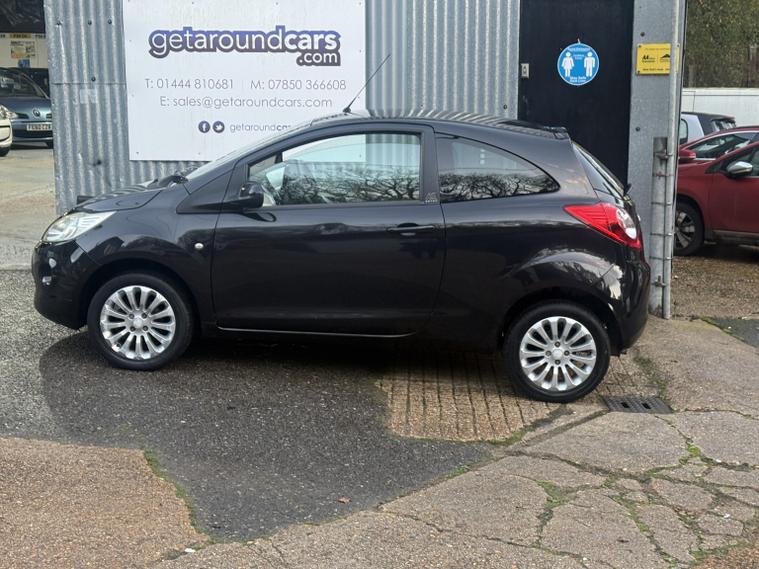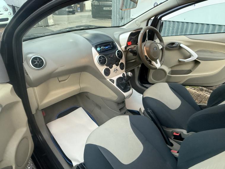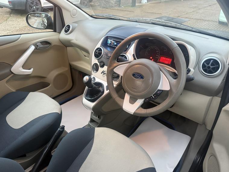 getaround in this immaculate 1.2 petrol KA from Ford. This 5-speed manual Zetec model looks great finished in black with contrasting dark cloth interior. It has a good spec that includes alloy wheels, electric windows, electric mirrors, remote locking, radio with hands-free phone prep and air-conditioning. It has a comprehensive service history that is made up of some 7-dealer stamps and a long advisory-free MOT. It comes with two keys, locking wheel nut, fully stamped service booklet, clear HPi certificate. Phone, text or email for an appointment to view this cheap to run and cheap to insure ulez compliant hatchback soon.