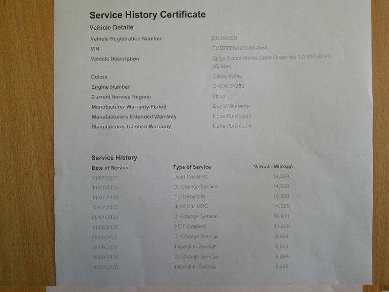 This 2019 Skoda Citigo MPI Monte Carlo presents an exceptional opportunity with its remarkably low mileage of just 22, 000 miles, significantly less than expected for its age. This Euro 6 compliant 1.0 litre petrol model boasts a full service history, with its last service completed on 2025-11-20 at 22, 085 miles, and benefits from an MOT valid until July 2026. Included with this vehicle is a 3 month warranty for your peace of mind. The Citigo MPI Monte Carlo is designed for efficiency and practicality, offering an impressive fuel economy of 54 mpg and low CO2 emissions, making it an economical choice. Its low insurance group rating further enhances its appeal as a cost effective vehicle. For your comfort and convenience, this model is equipped with manual air conditioning and the Radio Swing system, which includes Bluetooth connectivity for seamless audio streaming and hands free calls. Specification, 12V Power Socket, 15in Alloy Wheels - Crux - Black, ABS - Anti-Lock Braking System, Air Conditioning - Manual, Airbag for Driver and Front Passenger, Bumpers - Body Coloured, Centre Console - Red, Chrome Surround on Instrument Panel - Radio and Air Vents, Darkened Rear Lights, Dashboard Pad - Black Gloss with Monte Carlo Logo, Door Handles - Interior in Chrome, Driver and Front Passenger Seatbelt Warning Light, Drivers Sun Visor with Ticket Holder - Passengers Sun Visor with Mirror, ESC - Electronic Stability Control, Electric Windows - Front, Floor Mats with Red Stitching, Four Speed Heating and Ventilation System with Windscreen Defroster, Front Fog Lights, Halogen Twin Headlights with Separate LED Daytime Running Lights, Head - Thorax Side Airbag for Front Seats, Head Restraints - Height Adjustable Rear x2, Head Restraints - Integrated Front, Headlight Tilt Control, High Level 3rd Rear Brake Light, ISOFIX Child Seat Fittings on Outer Rear Seats with Top Tether, Immobiliser, Leather Gearshift Handle and Handbrake Lever, Leather Multifunction Sports Steering Wheel, Lockable Fuel Tank Cap, Luggage Compartment Cover with Boot Lighting, Monte Carlo Logo and Exterior Styling Including Rear Spoiler - Rear Diffuser - Front Grille and Door Mirrors in Black, Power Steering, Privacy Glass, Radio Swing, Reading Lights - Front, Rear Fog Light, Rear View Mirror - Manually Dimmed, Remote Central Door Locking, Seats - Drivers Height Adjustment, Seats - Front - Small Pockets on the Side, Seats - Split Folding Rear - 60-40, Smartphone Holder, Steering Wheel - Height Adjustable, TPMS - Tyre Pressure Monitoring System, Two Tone Horn, Tyre Repair Kit, Windscreen Wiper Front and Rear