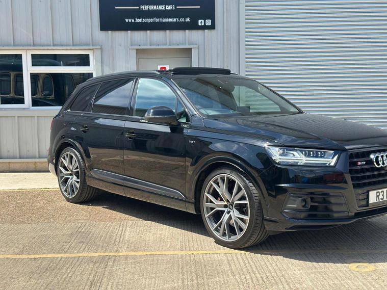 Audi SQ7 Vorsprung 4.0 V8 TDi Quattro DSG, 2018 (18), only 46, 000 miles, ULEZ compliant, 3 service records, HPI clear, long MOT, 2 keys, 3 month warranty. A lovely example of these stunning SQ7 Vorsprung. This particular example is finished in Black, which is complemented by the anthracite/diamond wheels and black diamond cross leather interior making the overall appearance of the car look first class. We bought the car directly from its previous owner, who had owned it for the last 5 years and decided to sell it due to his finance agreement coming to an end. The whole car is in lovely condition throughout. All four wheels are being refurbished before sale and all four tyres have lots of life remaining. It drives superbly too, exactly as one of these should. Featuring a massive specification, the car has; full quilted leather/heated/electric seats, panoramic roof, alacantara headlining, head up display, keyless entry and start, BOSE sound system, heated/electric/powerfold mirrors, auto lights and wipers, radar cruise control, lane assist, 360 degree camera, virtual dashboard, CarPlay, drive select mode, park assist, heated rear seats, power tailgate, navigation, parking sensors, voice control, Bluetooth, DAB radio, 4 zone climate control, armrest, electric windows, and much more. If you are looking for a very good one of these SQ7 you really wont be disappointed in this car. Viewing is by appointment only. Finance and part exchange are both available. The car is supplied with a 3 month warranty. We are able to offer a fully remote service, including detailed personalised videos, remote finance and document signing and delivery. Please call us for more details. 42, 495