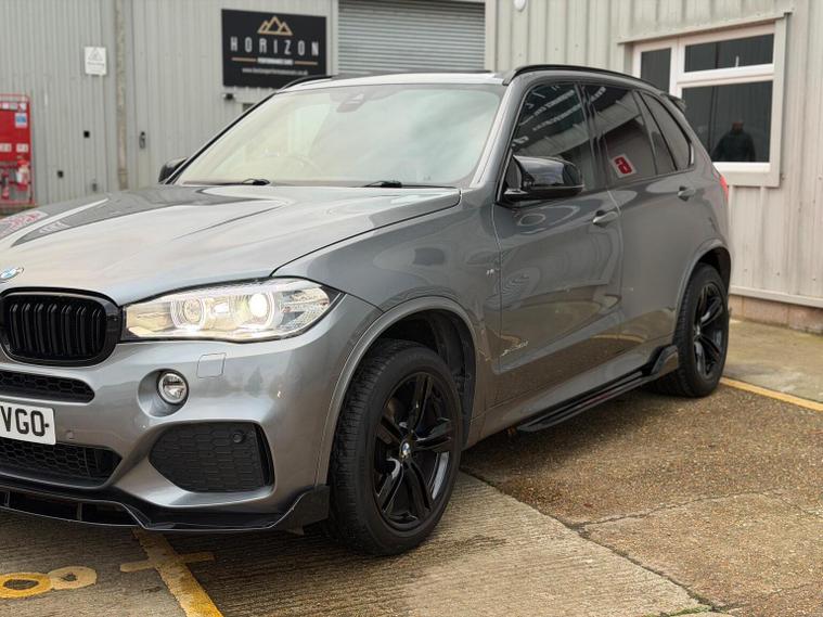 BMW X5 xdrive30d M Sport auto, 2015 (15), only 74, 000 miles, 9 service records, HPI clear, 2 keys, long MOT, 3 month warranty. A stunning example of these brilliant BMW X5. Finished in grey with black wheels and full splitter kit (black grills, front splitter, side skirts, rear diffuser, rear spoiler and M style mirror caps) it looks truly fantastic and is the colour combination to have in our opinion. We bought the car directly from its previous owner, who was selling due to receiving a new car. The condition of the car can only be described as fantastic, all four alloy wheels are in great condition. All four tyres have lots of life left in them. Mechanically it is excellent too, it drives superbly, just as one of these should. The spec on this BMW is outstanding as well; panoramic roof, head-up display, Harman Kardon sound system, adaptive headlights, cold weather pack, reversing camera, heated steering wheel, high beam assist, Terra with black leather, pro nav, 7 seats, black wheels, heated/electric/leather/memory seats, lane assist, powerfold mirrors, tinted windows, Bluetooth, armrest, split folding rear seats, cruise control, drive select modes, electric windows, AC, duel zone climate control, auto lights, auto wipers, keyless start, parking sensors, voice control and lots more. A lovely example all round, if you are looking for a well specd, low mileage, immaculate example, you wont be disappointed with this one. Viewings are by appointment only, part exchange and finance are both possible, we can also deal with you remotely should you wish by proving part exchange valuations, remote finance and paperwork signing. All cars are supplied with a 3 month warranty. 19, 495
