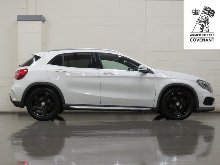 Arrow Motor Company are pleased to present this fantastic Mercedes GLA 220d AMG Line Premium Plus 4Matic Auto, finished in the stunning Cirrus White Paintwork, with Contrasting Black Half Leather Interior, Plus Aluminium Interior Trims. Equipped with Mercedes 2.1L Diesel engine producing 168bhp, whilst being able to achieve 55.4mpg combined, rising to 62.8mpg in Extra-Urban environments. This particular example is Complimented by only 1 Owner From New, and a Full Service History (FSH). This vehicle also benefits from the following impressive list of features below, , .Interior Features, Heated Front Seats | Bluetooth Telephone and Media Streaming | LED Daytime Running Lights | Climate Control with Air Conditioning | Cruise Control With Speed Limiter | Xenon Front Headlights | Digital Speedometer | Drive Modes (Manual, ECO, Sport) | Mercedes Benz 7-Speed Automatic Transmission | Multifunction Performance Steering Wheel With Gearshift Paddle | Anthracite Headliner | Silver Aluminium Interior Trim | USB | Front Cup Holder | Electric Windows | 12v Plug | ISOFIX | Central Locking, Exterior Features, Glass Opening Panoramic Sunroof | 18-Inch Grey AMG Alloy Wheels | Powered Boot Lid | Mercedes Benz 4Matic 4 Wheel Drive System | Reverse Camera | Front and Rear Parking Sensors | Indicators in Mirrors | Rear Privacy Glass | Boot Lip Metal Trim | Dimming Driver Exterior Mirror | Electrically Folding and Adjustable Side Mirrors | Side Mirror Indicators | LED Taillights | Automatic Lights | Automatic Wipers | Dual Chrome Tip Exhausts