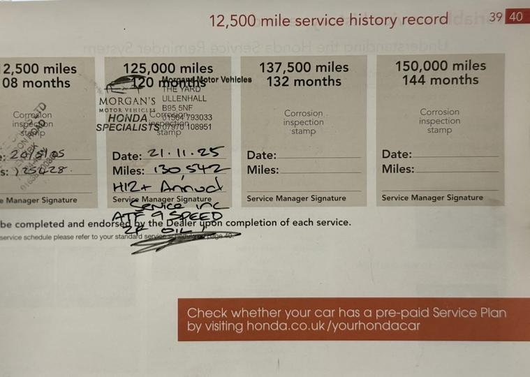 FIRSTLY A BIG THANK YOU FOR READING THIS AND READING OUR REVIEWS!, FOR A FANTASTIC AND UNIQUE CUSTOMER EXPERIENCE PLEASE PLEASE POP US AN EMAIL OR GIVE US A CALL. The fact that you are reading this means you have done your research, and will know by now that Morgans Motor vehicles are regarded nationally as the first place you come to purchase your used Honda. Here we have no silly sales and performance targets, instead we like to offer a very relaxed atmosphere to come and purchase your next vehicle. We believe that having a nice cup of coffee (decent Nespresso coffee I might add) without time restriction is something we offer all our customers. This is a premium level service that you will not receive at most car dealerships and this is something we are proud to offer. The Car: This well presented Honda CR-V has just 130, 542 miles and three owners from new. She has been extremely well maintained and offers excellent value for money. She comes complete with two original keys and a full service history with 11 service stamps in her portfolio and the 12th service to be completed by ourselves. Here at Morgans Motor Vehicles we like to offer our AA Dealer promise package (where applicable) which includes 12 Months AA Roadside assistance, a new set of registration plates, a 69 point health inspection, an MMV annual service and new MOT. During this robust process in our 69 point check, we give you a consumable forecast on the perishables such as tyres and brake pads and discs which can be seen on our photos. Our MMV service consists of checking all lights and levels, as well as adding fully synthetic low ash Valvoline 5W30 Motor oil, a new oil filter air filter and pollen filter (pollen if applicable) to this lovely vehicle. Crucially we have also carried out with Honda the all important 9 speed Automatic transmission fluid at great expense! This package is something that very few independents offer, and we believe adds exceptional value and most importantly peace of mind for you our customers . We can confirm that tyres are of good quality across both axles with5.0 mm on the front and 4.0 mm on the rear. The brake pads are in good condition with 45% remaining to the front and 80% remaining to the rear with the brake discs in healthy condition. To complete our handover we will help the new owner by going through all relevant documents such as the V5 Registration certificate transfer and taxation, and in addition set up 6 months warranty for your convenience. To summarise a fantastic family vehicle with low running costs and insurance, makes the CR-V automatic an excellent purchase. Please take the time to watch our video and view our high quality definition photos for details we provide that other professionals do not. Here at Morgans Motor Vehicles we pride our ourselves on the customer journey and experience. If you have not bought a vehicle from us before please take the time to read our dealer reviews on Google and Autotrader to get a really good understanding of how we work and how we prepare our vehicles. Our retail prices are examined daily to ensure all our vehicles are accurate to the market and represent best value for our customers. We have worked incredibly hard to get a great reputation based on our customer service and transparency.
