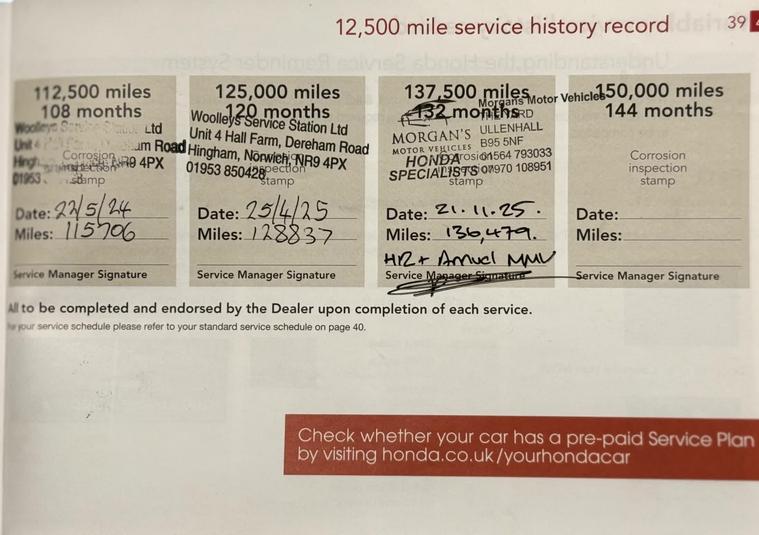 FIRSTLY A BIG THANK YOU FOR READING THIS AND READING OUR REVIEWS!, FOR A FANTASTIC AND UNIQUE CUSTOMER EXPERIENCE PLEASE PLEASE POP US AN EMAIL OR GIVE US A CALL. The fact that you are reading this means you have done your research, and will know by now that Morgans Motor vehicles are regarded nationally as the first place you come to purchase your used Honda. Here we have no silly sales and performance targets, instead we like to offer a very relaxed atmosphere to come and purchase your next vehicle. We believe that having a nice cup of coffee (decent Nespresso coffee I might add) without time restriction is something we offer all our customers. This is a premium level service that you will not receive at most car dealerships and this is something we are proud to offer. The Car: This well presented Honda CR-V has just 136, 479 miles and ONLY TWO owners from new. She has been extremely well maintained and offers excellent value for money. She comes complete with two original keys and a full service history with 10 service stamps in her portfolio and the 11th service to be completed by ourselves. During this service we have spent a small fortune to get her up to Morgan standard including MMV annual service (350) new Honda OEM battery(180), NEW EGR cooling pipe (700) Honda ATF transmission fluid changer (250) new high level brake light and rear D Bushes!, Here at Morgans Motor Vehicles we like to offer our AA Dealer promise package (where applicable) which includes 12 Months AA Roadside assistance, a new set of registration plates, a 69 point health inspection, an MMV annual service and new MOT. During this robust process in our 69 point check, we give you a consumable forecast on the perishables such as tyres and brake pads and discs which can be seen on our photos. Our MMV service consists of checking all lights and levels, as well as adding fully synthetic low ash Valvoline 5W30 Motor oil, a new oil filter air filter and pollen filter (pollen if applicable) to this lovely vehicle. This package is something that very few independents offer, and we believe adds exceptional value and most importantly peace of mind for you our customers . We can confirm that tyres are of good quality across both axles with 4.5 mm on the front and 7.5mm on the rear. The brake pads are in good condition with 70% remaining to the front and 70% remaining to the rear with the brake discs in healthy condition. To complete our handover we will help the new owner by going through all relevant documents such as the V5 Registration certificate transfer and taxation, and in addition set up 6 months warranty for your convenience. To summarise a fantastic family vehicle with low running costs and insurance, makes the CR-V an excellent purchase. Please take the time to watch our video and view our high quality definition photos for details we provide that other professionals do not. Here at Morgans Motor Vehicles we pride our ourselves on the customer journey and experience. If you have not bought a vehicle from us before please take the time to read our dealer reviews on Google and Autotrader to get a really good understanding of how we work and how we prepare our vehicles. Our retail prices are examined daily to ensure all our vehicles are accurate to the market and represent best value for our customers. We have worked incredibly hard to get a great reputation based on our customer service and transparency.