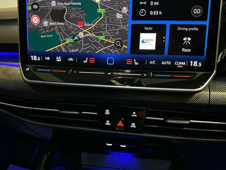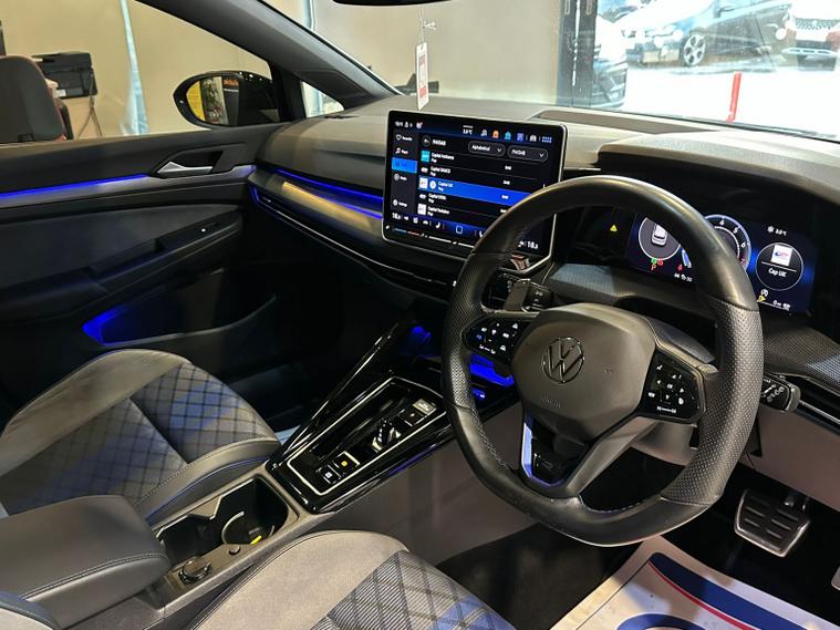 This 2025 Volkswagen Golf TSI R Black Edition boasts a clear vehicle history, offering you peace of mind. This striking model features a powerful 2.0 litre petrol engine paired with Four Wheel Drive for confident handling. The R Black Edition trim level comes equipped with a suite of advanced technology, including a rear view camera with parking assistance, and a Technology Package that adds keyless entry and front and rear parking sensors. Inside, youll find comfort and convenience with Air Care Claytronic 3 Zone climate control, including independent rear air conditioning, and heated front seats. The leather wrapped sports steering wheel is multifunction, featuring touch controls and shift paddles, and is also heated for those colder journeys. Experience exhilarating performance with this Volkswagen Golf, capable of accelerating from 0 to 62 miles per hour in just 4.6 seconds, a testament to its dynamic capabilities. This impressive acceleration highlights how this vehicle offers a more engaging driving experience compared to similar models. Furthermore, the Golf provides ample practicality with its large boot space, making it suitable for a variety of needs, from daily commutes to weekend getaways. This Euro 6 compliant vehicle combines performance, technology, and utility in a sophisticated package. The specification and technical details in this advert are pulled through from a third-party source. MB Motor Group therefore cannot guarantee or warrant the accuracy of this information. We therefore kindly ask customers to check the specification of their chosen car to ensure it meets all of their requirements prior to purchase.