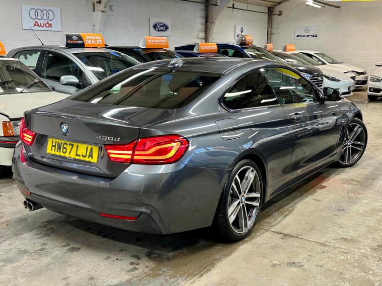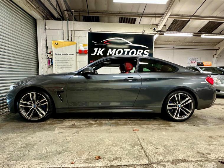 Ready to drive away today massive spec BMW 4 Series 3.0 430d M Sport Auto Euro 6 (s/s) 2dr, 2 owners from new, well maintained example with full service records and recent service since arriving to us. Looks stunning finished in metallic grey, privacy glass, 19alloy wheels with M Performance brakes, LED lights, front and rear parking sensors. Interior boasts plenty of factory extras including red leather seats with memory and heated function, M Sport multifunction leather steering wheel with cruise control, beam assist, and paddle shift, lane departure and collision assist, heads up display, Harmon Kardon, wide screen multimedia, sat nav, DAB, Bluetooth connectivity list goes on. 2 keys, buy with confidence from an award winning, AA Approved dealership with a variety of warranty products available. Viewing available seven days a week by appointment (evening and weekends available), nationwide delivery. Same day finance decisions in house at competitive rates, nil deposit options, please inquire with a simple call to drive away today. Drive away insurance, part exchange welcome, top prices paid. Member of the Motor Trade trading standards and motoring ombudsman code of practice.