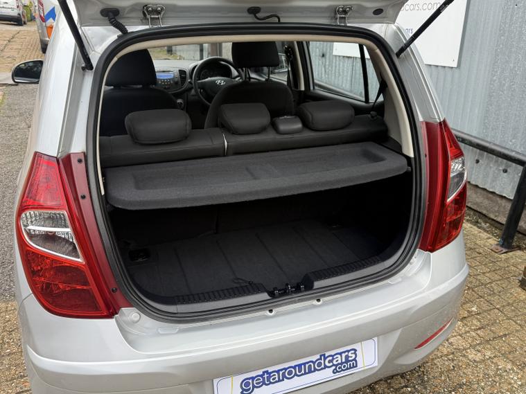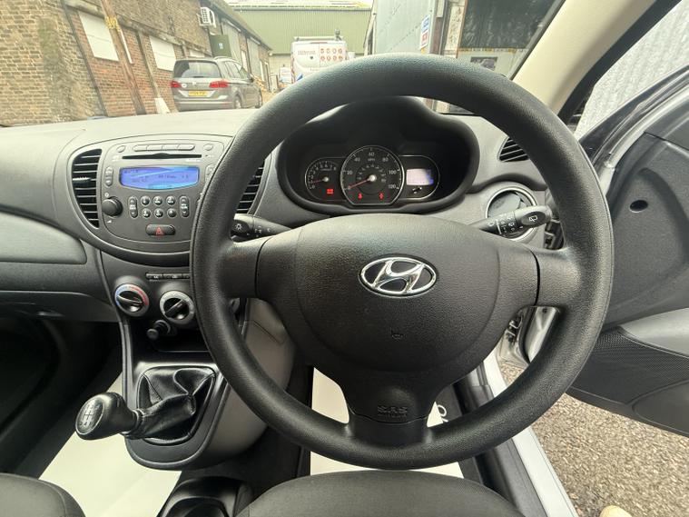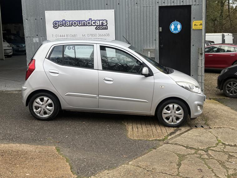 getaround in this immaculate 1.2 petrol I10 from Hyundai. This 5-speed manual Active model looks good finished in metallic silver with contrasting dark cloth interior. It has a good spec that includes electric windows, remote locking, alloy wheels and air-conditioning. The car has a full and comprehensive Hyundai main dealer service history that is made up of some 11-dealer stamps and a long advisory-free MOT. It comes with the owners book pack, fully stamped service booklet, two keys, locking wheel nut and clear HPi certificate. Phone, text or email for an appointment to view this cheap to rum and cheap to insure ulez compliant hatchback soon.