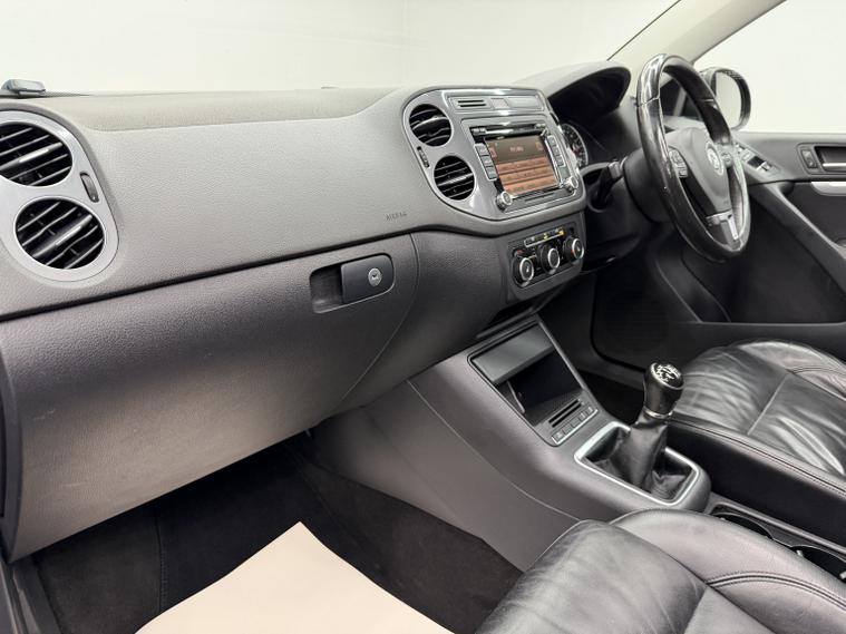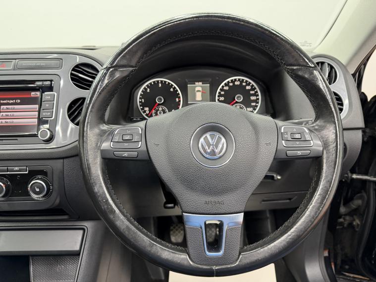 Discover this 2011 Volkswagen Tiguan TDI Escape, presenting remarkably low mileage for its age with just 105, 357 miles. This capable four-wheel-drive model is powered by an efficient 2.0 litre diesel engine and offers an impressive 2, 200 kg towing capacity, making it a practical and versatile choice for a range of needs. Inside, the Tiguan features a full black leather interior with heated front seats, providing comfort throughout the year. A panoramic sunroof enhances the spacious cabin, while convenience is elevated with Park Assist and front and rear parking sensors, making manoeuvring effortless. Stay connected with Bluetooth, AUX input, and a 6-CD changer, while the Climatic semi-automatic air conditioning ensures a pleasant driving environment. Automatic dusk-sensing headlights add to the vehicles safety and ease of use. Recently fitted with freshly refurbished x4 alloy wheels, this Tiguan is presented in great overall condition. Running costs remain excellent, with 49 mpg fuel economy, low CO emissions, and a low insurance group, making it a more economical choice compared to many similar SUVs. This outstanding Tiguan is priced at 5, 195, with finance options available, part-exchange welcome, and a 3-month warranty included (with the option to extend). A 12-month MOT will be provided upon sale for added peace of mind.