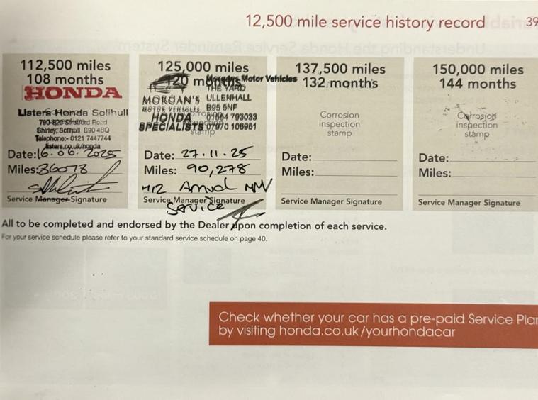 FIRSTLY A BIG THANK YOU FOR READING THIS AND READING OUR REVIEWS!, FOR A FANTASTIC AND UNIQUE CUSTOMER EXPERIENCE PLEASE PLEASE POP US AN EMAIL OR GIVE US A CALL. The fact that you are reading this means you have done your research, and will know by now that Morgans Motor vehicles are regarded nationally as the first place you come to purchase your used Honda. Here we have no silly sales and performance targets, instead we like to offer a very relaxed atmosphere to come and purchase your next vehicle. We believe that having a nice cup of coffee (decent Nespresso coffee I might add) without time restriction is something we offer all our customers. This is a premium level service that you will not receive at most car dealerships and this is something we are proud to offer. The Car: This well presented Honda CR-V has just 90, 278 miles and ONLY TWO owners from new. She has been extremely well maintained and offers excellent value for money. She comes complete with her original service history booklet with 9 Honda service stamps in her portfolio and the 10th service to be completed by ourselves. Here at Morgans Motor Vehicles we like to offer our AA Dealer promise package (where applicable) which includes 12 Months AA Roadside assistance, a new set of registration plates, a 69 point health inspection, an MMV annual service and new MOT. During this robust process in our 69 point check, we give you a consumable forecast on the perishables such as tyres and brake pads and discs which can be seen on our photos. Our MMV service consists of checking all lights and levels, as well as adding fully synthetic low ash Valvoline 5W30 Motor oil, a new oil filter air filter and pollen filter (pollen if applicable) to this lovely vehicle. This package is something that very few independents offer, and we believe adds exceptional value and most importantly peace of mind for you our customers . We can confirm that tyres are of good quality across both axles with 6.0mm on the front and 6.1mm on the rear. The brake pads are in good condition with50% remaining to the front and 75% remaining to the rear with the brake discs in healthy condition. To complete our handover we will help the new owner by going through all relevant documents such as the V5 Registration certificate transfer and taxation, and in addition set up 6 months warranty for your convenience. To summarise a fantastic family vehicle with low running costs and insurance, makes the CR-V EX an excellent purchase. Please take the time to watch our video and view our high quality definition photos for details we provide that other professionals do not. Here at Morgans Motor Vehicles we pride our ourselves on the customer journey and experience. If you have not bought a vehicle from us before please take the time to read our dealer reviews on Google and Autotrader to get a really good understanding of how we work and how we prepare our vehicles. Our retail prices are examined daily to ensure all our vehicles are accurate to the market and represent best value for our customers. We have worked incredibly hard to get a great reputation based on our customer service and transparency.