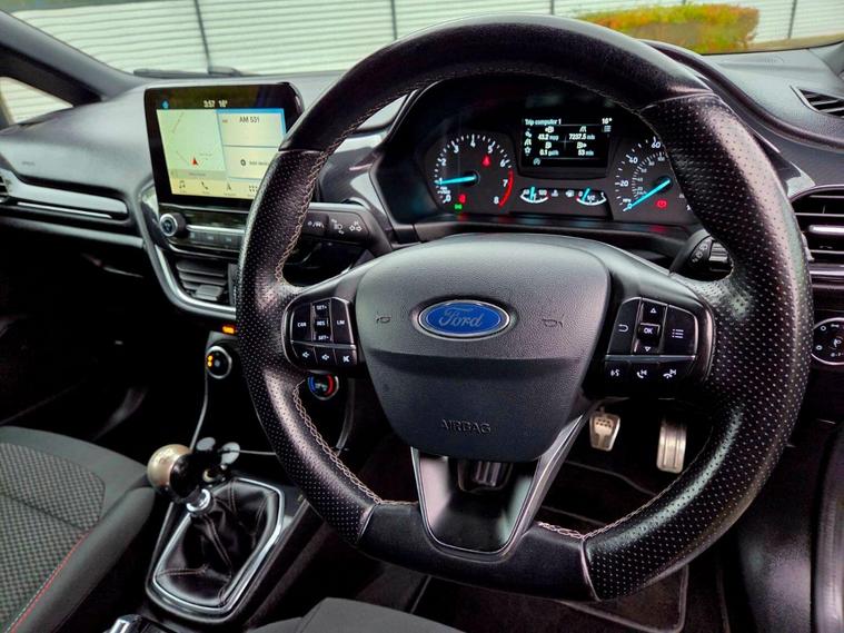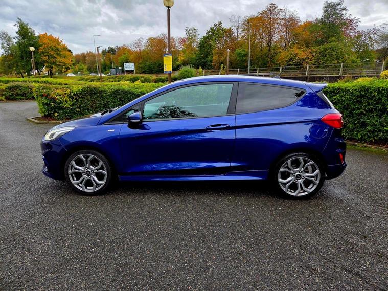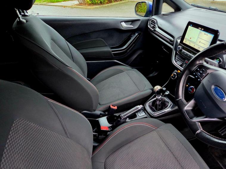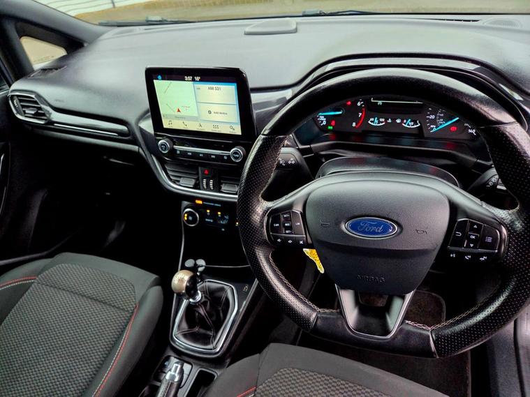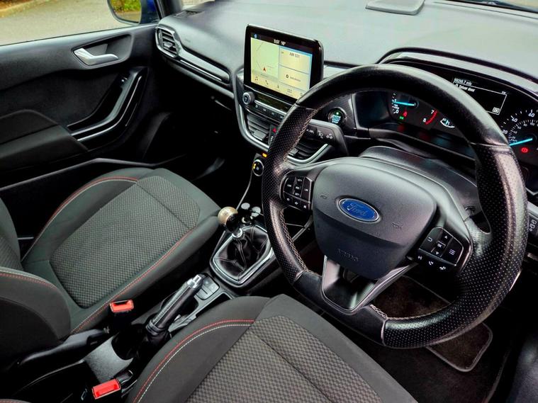 This 2017 Ford Fiesta ST Line has a clear vehicle history check and benefits from a recent service at 99, 000 miles, with a 12 month warranty for your peace of mind. This 1.0L petrol model, finished in the sporty ST Line trim, meets Euro 6 emissions standards. It comes equipped with useful features such as automatic headlights, a Ford DAB radio with Ford SYNC3 supporting Apple CarPlay and Android Auto, and manual air conditioning. The Ford Fiesta ST Line offers an impressive fuel economy of 66 mpg, making it an economical choice for your daily journeys. Its low CO2 emissions further contribute to its efficiency. For those who enjoy a responsive drive, it accelerates from 0 to 62 mph in just 9.9 seconds, demonstrating a performance that stands out compared to other vehicles in its class. Ford Fiesta 1.0T EcoBoost ST-Line Reg year 2017 Manual Gearbox 1.0 Petrol 99.000 miles 4 owners One key Part Service History The vehicle comes with minimum 6 months MOT, 12 Months warranty + service included