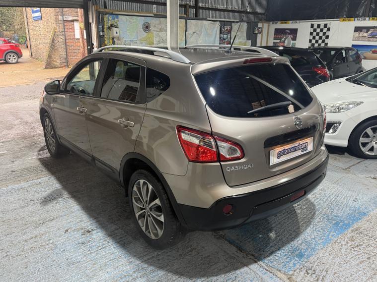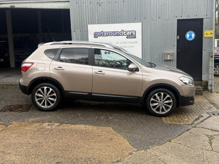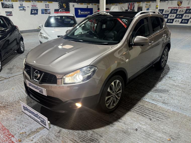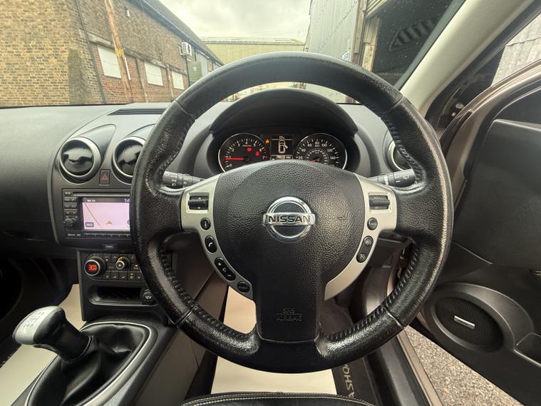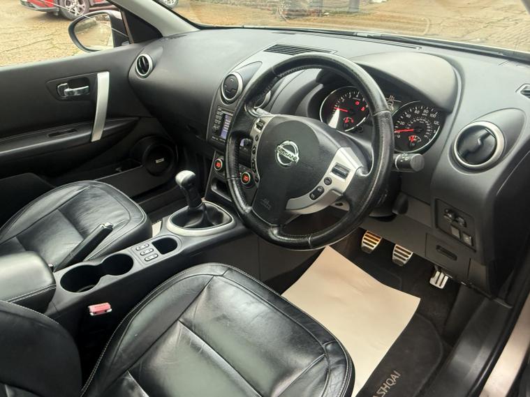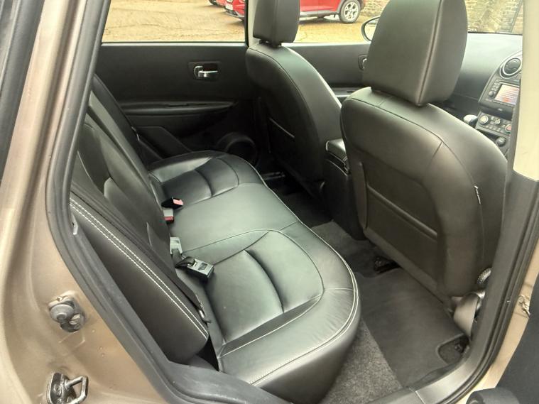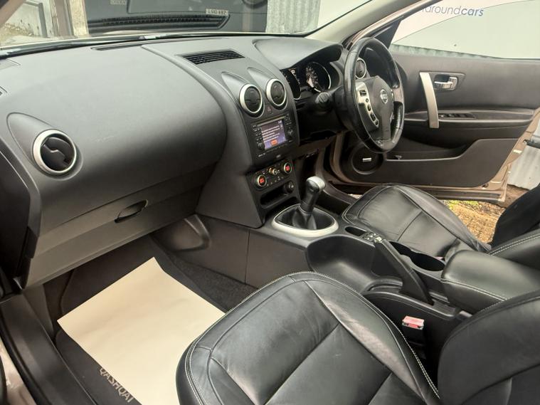 getaround in this lovely 1.6 petrol Qashqai from Nissan. This range topping 5-speed manual Tekna model looks good finished in a metallic beige with contrasting full black leather interior. It has an amazing spec that includes panoramic glass sunroof, Colour Sat-Nav, Reversing camera, heated seats, cruise control and air-conditioning. The car has a comprehensive service history that is made up of some 11-dealer stamps. It comes with the owners book pack, fully stamped service booklet, two keys, locking wheel nut and clear HPi certificate. Phone, text or email for an appointment to view this sought after ulez compliant SIUV soon.