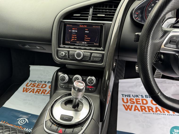 Audi R8 5.2 V10 Quattro (2013) Facelift model 29, 000 Miles | Full Service History | Over 10, 000 in Factory Extras, An exceptional opportunity to own a true supercar icon: this 2013 Audi R8 5.2 V10 Quattro, boasting just 29, 000 miles from new, a full service history, and over 10, 000 in factory-fitted optional extras and some very expensive aftermarket upgrades , Renowned for its thrilling performance, everyday usability, and timeless design, the R8 remains one of the most desirable driver-focused supercars on the market. Key features:, 5.2-litre naturally aspirated V10 engine, Quattro all-wheel drive, 29, 000 genuine miles, Full service history, Paddle-shift automatic gearbox, Magnetic Ride suspension, Audi Drive Select, Bang & Olufsen sound system, Satellite navigation, Leather & Alcantara interior, LED headlights, 19 alloy wheels, Climate control, Front and rear parking sensors, Interior Carbon Pack , Audison Amp, Tweeters & Subwoofer , On top of the factory optional extras this vehicle has an Armytrix full titanium switchable valvetronic exhaust system costing over 9000. Sounds unreal. Audison Amp, Tweeters & Subwoofer 900, Performance highlights:, 060 mph in approx. 3.5 seconds, Top speed: 196 mph, 525 bhp, Meticulously maintained and presented in outstanding condition inside and out. Always garaged, never tracked, and driven sparingly. This is a rare chance to own a properly cared-for, high-spec example of an iconic Audi supercar. Available for immediate handover. Serious enquiries only.