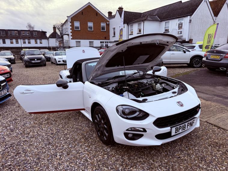 Sporty & Rare 2018 Fiat 124 Spider S-Design Limited Edition Based On Mazdas Iconic MX-5, 1.4 Turbocharged Petrol, 6 Speed Manual, 2 Door Cabriolet, Finished In Ice White With Contrasting Red Side Stripe & Graphite Alloy Wheels, Great Spec Including Full Black Leather Interior With Heated Front Seats, Sat Nav, DAB Radio With USB Connectivity & Bose Speaker System, Bluetooth, Climate Control, Cruise Control, Electric Windows & Door Mirrors, Rear Parking Sensors & Reversing Camera, LED Headlamps, 17 Inch Alloy Wheels, Keyless Entry & Push Button Start Plus More, Full Service History (Serviced @ 10, 18, 28, 35, 45 & 47, 000 Miles), MOT Expires 29/06/2026, Supplied With 2 Keys & Owners Manuals, 3 Months Engine And Drivetrain Warranty With Options To Extend, ULEZ Compliant, Finance Available, HPI Clear, AA Approved Dealer, 12 Months Breakdown Cover Free Of Charge, Driveaway Insurance Available, All Of Our Cars Are Supplied With A Workshop Inspection Including MOT & Service If Required Plus A Full Valet, Debit Card Payments Accepted, FCA Regulated Dealer, No Admin Fees, Part Exchange Welcome, Delivery Can Be Arranged For An Additional Fee, Sunday Viewings Available By Pre Arranged Appointments, dealer's website