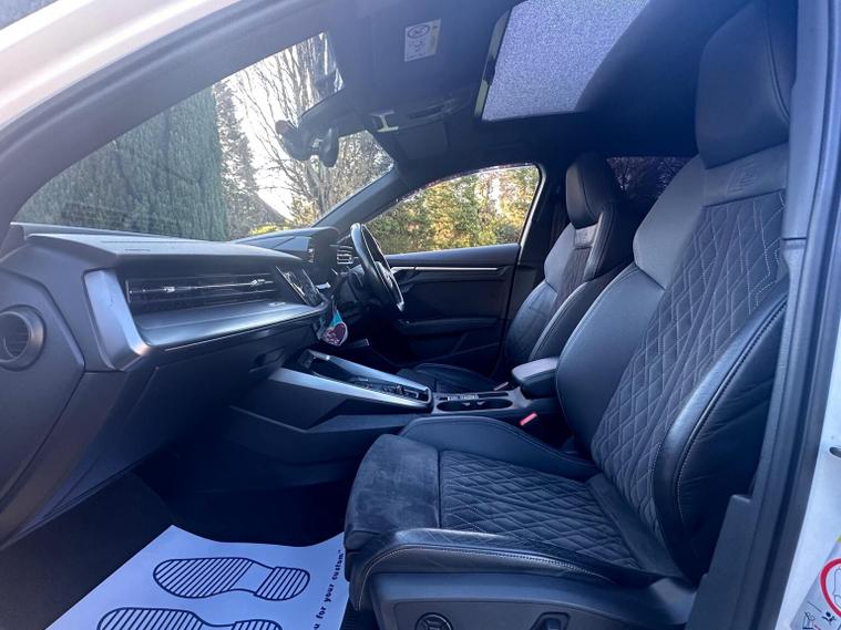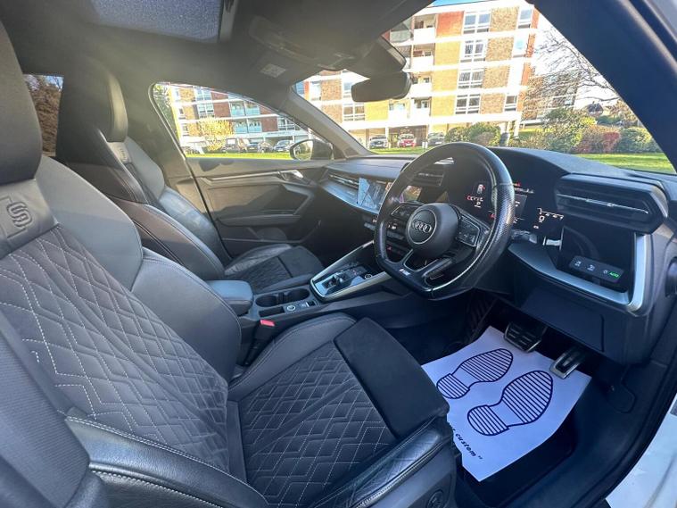 THIS 2021 AUDI A3 COMES WITH A MEGA SPEC, PANORAMIC ROOF, VIRTUAL COCKPIT, AUTOMATIC, HEATED AND ELECTRIC SEATS, APPLE CAR PLAY, REVERSE CAM WITH SATELLITE VIEW AND SENSORS, GLOSS BLACK BODYKIT, 19 INCH ALLOY WHEELS , FULL AUDI SERVICE HISTORY, As a well appointed Edition 1 trim, this model comes equipped with a suite of desirable features designed for comfort and convenience. Enjoy the ease of Dual Zone Electronic Climate Control, ensuring a pleasant cabin temperature for all occupants. Parking is made simpler with rear parking sensors, and the front seats offer a touch of luxury with heating and electric adjustment, including a memory function for the drivers seat. The Light and Rain Sensor automatically manages headlights and wipers, adding to the effortless drive. The performance of this Audi A3 is notable, achieving 0-62mph in just 8.4 seconds, demonstrating its responsive acceleration. This capability, combined with its generous boot space, makes it a practical choice for everyday use and longer journeys. The inclusion of features like heated front seats and automatic lighting highlights how this vehicle provides a superior level of comfort and ease compared to other models in its class.