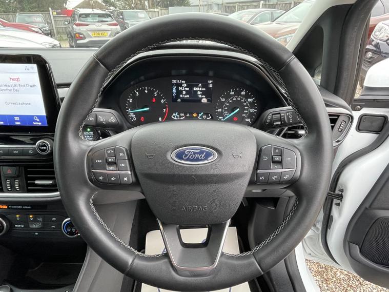 Essex Car Fleet are delighted to offer this superbly specified 2022 72 Ford Fiesta 1.0 Titanium mHEV, finished in Frozen White and showing just 28, 430 miles. This example combines smart styling, excellent efficiency from its mild-hybrid powertrain and an impressive level of comfort and technology. On the outside, the Fiesta Titanium stands out with its chrome grille detailing, body-coloured bumpers, door handles and mirrors, rear privacy glass and sleek LED headlights with integrated daytime running lights. The car features Fords Quickclear heated windscreen for fast de-icing, rain-sensing wipers and rear parking sensors to make every journey easier. Inside, the cabin feels bright, modern and well finished. Youll find sports seats with manual adjustment, a leather-style Sensico-trimmed steering wheel, a premium centre console with stowage, USB connectivity and cupholders, plus deluxe front floor mats. The 4.2-inch TFT display keeps key information clear, while Ford SYNC 2.5 provides seamless media control. Manual air conditioning ensures comfort all year round, and the rear seats split 60/40 to offer flexible practicality. This Fiesta also benefits from a strong suite of safety and driving aids, including Intelligent Speed Assistance, lane-keeping aid, traffic sign recognition, auto high beam, electronic stability control, emergency brake assist, hill start assist and multiple airbags. The car is equipped with keyless start, electric front and rear windows, heated and electrically adjustable mirrors, cruise control with speed limiter and selectable drive modes for a more personalised driving experience. Adding to peace of mind are features such as the Thatcham alarm with deadlocks, tyre pressure monitoring, Ford Easy-Fuel capless refuelling and a tyre repair kit. With its dynamic drive, excellent specification and outstanding economy, this Fiesta Titanium mHEV represents a fantastic choice for anyone seeking a stylish, well-equipped and efficient hatchback. With our location based in Battlesbridge in Essex, Enjoy haggle-free buying experience where you can drive away the same day of prior arranged appointment. Please see our website for details. Call now or enquire online for a no-obligation test drive, finance quote or part-exchange valuation, 5 Star Dealer, Finance Available, Delivery Available, Part exchange Available, all cars are supplied with a 3 months warranty, 12 months MOT. Please call all a member of the team on 01268372176 and we will be delighted to help you move your enquiry forward 5 Star Dealer, Finance Available, Delivery Available. Our preparation team have inspected to the highest level possible for the age and mileage of vehicle, You can rest assured your car has been cared for to our highest Standard. With our location based in Battlesbridge in Essex you can enjoy a haggle-free buying experience where you can drive away the same day if prior arranged appointment. 150 admin fee applies, please see our website for details.