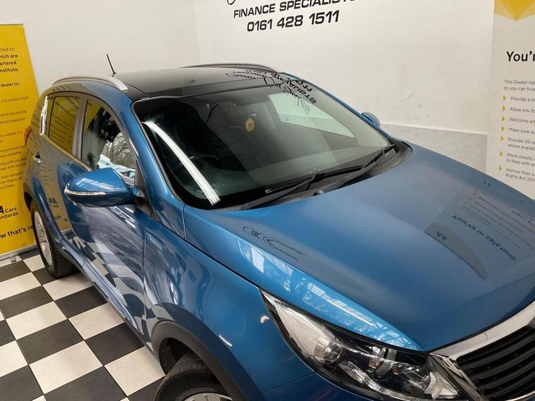 Here we have this lovely Kia Sportage 2 1.7 CRDi Eco Dynamics 2 5 door SUV Estate in Twillight Blue Metallic, Complimented with Black 1/2 Leather with Black velour trim Centres, 82, 000 Genuine miles, 2 Previous Owner, with the Last owner since 2021. Service History, Pre MOT Certs, Bills & Receipts etc. Looks & drives superb, excellent original condition throughout. Fantastic Specification including 6 speed Manual, Trip Computer, A/C, Dual Climate Control, Radio Cd Stereo, Electric Windows x4, Remote Central Locking alarm immobiliser, Cruise Control, Full Tilt & Slide glass Panoramic Sunroof, Colour Coded bumpers, Alloys, MOT Expires 13th May 2026. 195 Per Year Road Tax, insurance group 11E, making this an ideal family car. Fantastic performance & Fuel economy averaging between 47.1 - 58.9 MPG. Usual KIA Build Quality & Reliability, Viewing & Test drive is highly recommended, as this is in superb condition, & has been very well looked after throughout its life. For the fastest response or more information, please contact us on Whatsapp: 01616232128. Apply for finance: https:/ dealer's website - Reserve for 99, UK Wide delivery is available, with free delivery within 40 miles. Additional pictures can be found on our website at: dealer's website We offer a range of services including finance options, accepting debit and credit cards, bank transfers, MOTs, part exchanges, delivery and collection, finance settlements, and Hpi reports. There are several reasons to buy from us, including being an AA trusted dealer, having 5-star Auto Trader reviews, offering click and collect, welcoming AA and RAC inspections, considering good or poor credit history for finance options, providing same day drive away, and offering 12 months of free AA breakdown cover. Our location is at Cheadle Car Sales Ltd, Unit 8, Brookfield Road, Stockport, SK8 2PN. To apply for finance, please visit: https:/ dealer's website really