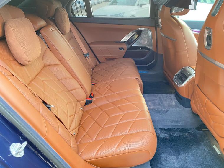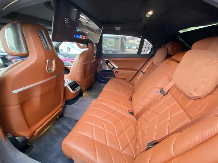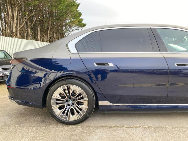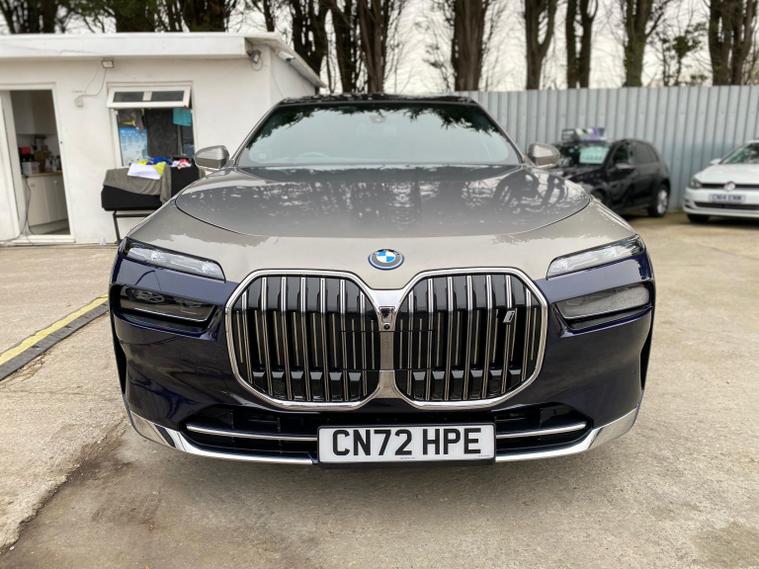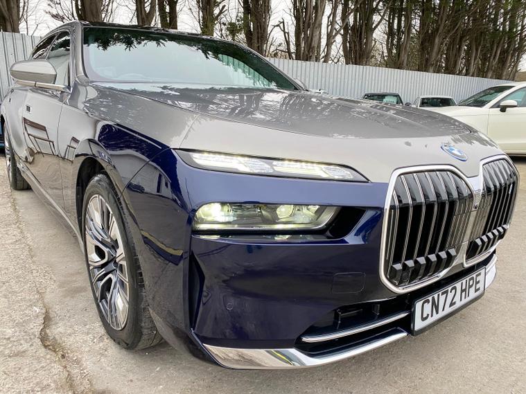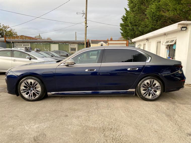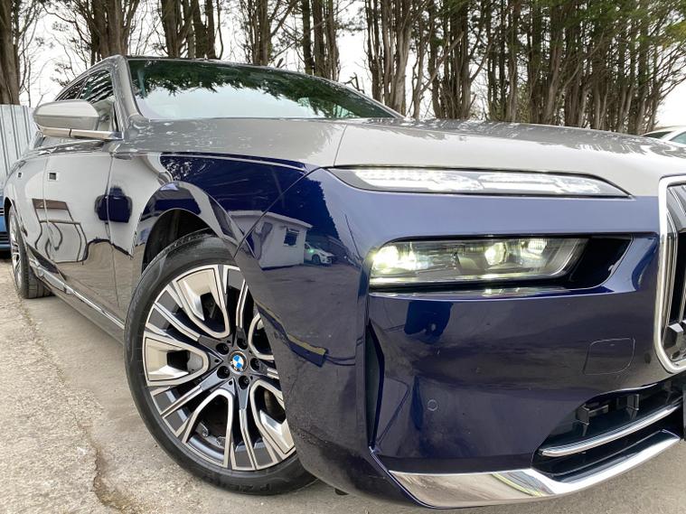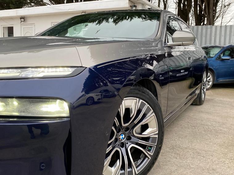 Presenting A Beautiful 2022 BMW I7 Electric Low Mileage With highlighting the dual exterior colors blue and gold for a striking, premium impression, This BMW i7 is a luxury all electric sedan that blends cutting edge technology, refined comfort, and powerful performance. It offers a spacious four door design, automatic transmission, and a driving experience that is both smooth and exhilarating, Key Highlights of the BMW i7Body Style;Four door luxury saloon/sedan with elegant proportions and a commanding road presence.Powertrain, Fully electric, dual motor setup delivering 400 kW 544 hp and 745 Nm of torque.Transmission; Single speed automatic gearbox for seamless acceleration.Performance; 0-62 mph in 4.5 secondsTop speed of 149 mphBattery; Large 105.7 kWh lithium-ion battery with advanced thermal management.Range, Between 366-387 miles depending on driving conditions.Efficiency; Average consumption of 18.4-19.6 kWh/100 dealer's website & Interior; Four-door layout with seating for five, designed as a luxury lounge on wheels.Premium materials, customizable ambient lighting, and BMWs My Modes for tailored driving atmospheres.Rear passengers enjoy a 31.3-inch Theatre Screen, creating a cinema like experience.Advanced sound system and crystal glass accents elevate the cabin sophistication.Design & Features; Iconic illuminated BMW kidney grille with Iconic Glow lighting.Sleek aerodynamic profile with a length of 5, 391 mm and width of 1, 950 mm, giving it a bold yet elegant stance.Crystal headlights and flush door handles enhance futuristic styling.Driving Experience; All-wheel drive xDrive ensures stability and confidence in all conditions.Smooth, silent acceleration thanks to the electric drivetrain.Adaptive suspension and advanced driver assistance systems deliver comfort and safety.In short; The BMW i7 2022 electric automatic four-door is not just a car, it is a statement of luxury, innovation, and sustainability. With its long range, powerful acceleration, and opulent interior, it redefines what a flagship electric sedan can be.