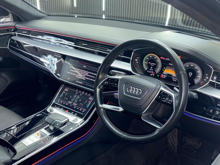 This 2022 Audi A8 TFSIe V6 Sport is presented with a clear vehicle history check, offering peace of mind for its next owner. This sophisticated saloon features a 3.0 litre petrol plug-in hybrid engine, delivering a powerful yet efficient driving experience with its four wheel drive system and Euro 6 emissions classification. The Sport trim level is enhanced by a suite of desirable features, including the Rear Comfort Pack with Bluetooth connectivity, and the Comfort and Sound Package which incorporates a luxury branded sound system and 360 degree parking assistance. Further enhancing its appeal are the opening panoramic glass sunroof and a heated twin-spoke leather multi-function steering wheel with shift paddles, ensuring comfort and control in all conditions. The Audi A8 TFSIe V6 Sport demonstrates impressive performance, accelerating from 0-62mph in just 4.9 seconds, a highlight that sets it apart from many other vehicles in its class. The inclusion of the City Assist Pack, which provides Blind Spot Assistance and comprehensive parking sensors alongside the 360 degree camera, further underlines its advanced technology and driver focused design. These carefully selected features combine to create a refined and capable luxury vehicle. This vehicles spec list is phenomenal not enough to add on here but it literally is the highest Spec A8 L on the market, please carry out your due diligence. Unreal spec