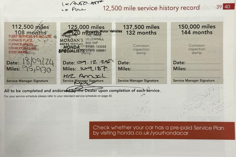 Thank you for checking us out and reading our reviews!, At Morgans Motor Vehicles, we do things differently:, Relaxed, friendly atmosphere no pushy sales targets. Expert Honda knowledge every car prepared to the highest standard. Premium experience enjoy a proper Nespresso coffee while we help you find the right car. Were proud to offer:, No time limits on appointments, Transparent service history, AA Dealer Promise(where applicable):, Annual service, Full inspection report, New MOT (if less than 7 months , 12 months AA roadside assistance, Your next Honda deserves care and attention and so do you. Call or email us today for a stress-free experience. THE CAR: This well presented Honda CR-V has just 109, 187 miles from new. She has been extremely well maintained and offers excellent value for money. She comes complete her original service history booklet 9 service stamps in her portfolio and the 10th service to be completed by ourselves. Our MMV service consists of a pre MOT checking all lights and levels, as well as adding fully synthetic Valvoline 5W30 Motor oil, a new oil filter air filter and pollen filter (pollen if applicable) to this lovely vehicle. Our uploaded photo Inspection form confirms :, Tyres are of good quality across both axles with 6.5mm on the front and 4.3-5.5mm on the rear. Brake pads are in good condition with 90% remaining to the front and 35% remaining to the rear with the brake discs in healthy condition. To complete our handover we will help the new owner by going through all relevant documents such as the V5 Registration certificate transfer and taxation, and discuss our 6 month MMV warranty for your convenience. PLEASE CALL MORGAN YOUR FRIENDLY HONDA EXPERT
