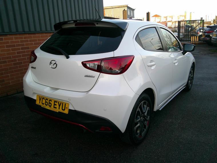 This 2016 Mazda2 SKYACTIV-G Sport Black boasts an MOT valid until September 2026, offering excellent peace of mind. This particular Mazda2 is a 1.5 litre petrol model, finished in the Sport Black trim and meets Euro 6 emissions standards. It comes with a 3 month warranty and has a clear vehicle history check. The last service was completed on 2025-12-15 at 62, 360 miles, and it benefits from partial service history. Notable features include air conditioning, rear parking sensors, an integrated Bluetooth system, and dusk sensing automatic headlights. This Mazda2 is designed to impress with its performance and efficiency. It achieves an impressive 63 mpg, demonstrating its excellent fuel economy, and has low CO2 emissions. The acceleration from 0-62mph in just 9.4 seconds indicates that this vehicle performs better than many others in its class.. Standard spec, 16in Alloy Wheels - Gunmetal, 7in Colour Touch Screen Display, ABS - Anti Lock Braking System, AM-FM-DAB Radio - Single CD Player-MP3 Audio System with 6 Speakers, AUX and 2 USB Inputs, Adjustable Speed Limiter, Air Conditioning, Airbags - Front Passenger Deactivation System, Body Coloured Door Mirrors, Brilliant Black Front Skirt, Brilliant Black Side Skirts, Courtesy Light with Integrated Spotlight, Cruise Control, Dashboard Panel - Black - Soft-touch with Red Stitching, Door Handles - Body Coloured, Door Mirrors - Electrically Adjustable - Heated - Power Folding with Integrated Indicator Lights, Door Pockets - Front, Dual Front Airbags, Dusk Sensing Automatic Headlights, Dynamic Stability Control - DSC - with Traction Control System - TCS, Electric Windows - Front and Rear with One Touch Auto Up and Down on Drivers Side, Electronic Power Assisted Steering, Emergency Stop Signalling System - ESS, Engine Start-Stop Button, Exhaust Tailpipes - Chrome Trim, Front Fog Lights, Front Passengers Seat - Manual Slide and Recline Adjustment, Front Side Airbags, Front and Rear Curtain Airbags, Gear Knob - Leather, Gear Shift Indicator, Glovebox, Grab Handles - Front Passenger and Two Rear with Coat Hooks, Halogen Daytime Running Lights, Handbrake - Leather Wrapped, Headlights - Coming-Leaving Home, Headlights - Halogen, Hill Hold Assist, ISOFIX Child Seat Anchorage for Outer Rear Seats, Integrated Bluetooth System, Lane Departure Warning System, Luggage Compartment - Light, Multimedia Commander, Privacy Glass - Rear and Rear Side Windows, Rain-Sensing Front Wipers, Rear Parking Sensors, Remote Central Locking with Deadlocking, Satellite Navigation System, Seatback Pocket - Passenger Side, Seatbelt Reminder, Seats - 60-40 Split Folding Rear, Seats - Drivers Manual Slide-Recline and Height Adjustment, Smart City Brake Support, Spoiler - Rear Brilliant Black, Steering Wheel - Leather, Steering Wheel - Mounted Audio and Bluetooth Controls, Steering Wheel - Tilt and Height Adjustment, Sunvisors - Drivers with Covered Vanity Mirror and Ticket Holder, Thatcham Category 1 Alarm and Immobiliser, Three Height Adjustable Rear Head Restraints, Trip Computer, Tyre Pressure Monitoring System, Tyre Repair Kit, Wipers - Rear Adjustable Speed with Intermittent