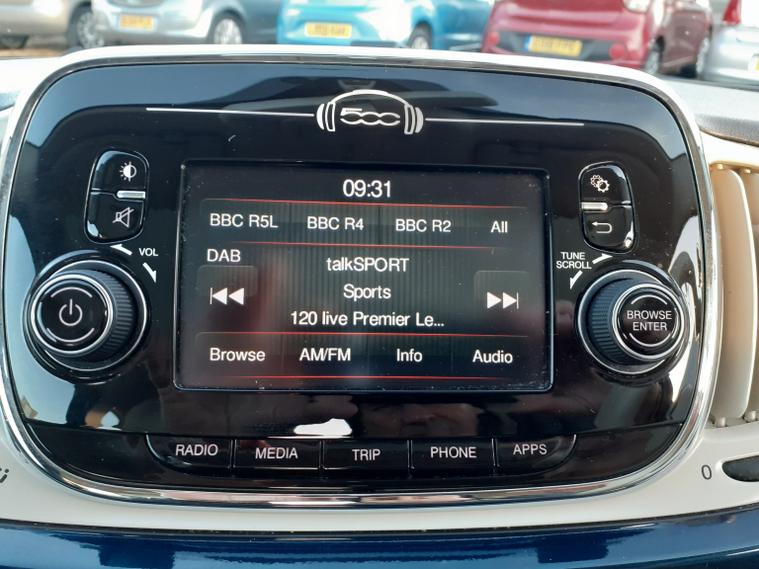 Fiat 500 Lounge 1.2 cc 3dr Hatchback Finished Off In A Blue Bodywork And Has A Grey Cloth And cream leather Interior, Has Alloy Wheels, Daytime Running Lights, Remote Central Locking, Electric Front Windows, Electric Mirrors, Heated Rear Screen, Air Conditioning, Touch Screen Dab Radio With Bluetooth Compatible, Aux, Usb And 12v Sockets In Centre Consol With Cup Holders, Multifunctional Steering Wheel, Cruise Control, Adjustable Steering Wheel, Tyre Repair Kit, Panoramic Sunroof With Blind, Has Service History, Mot, 6 Months Parts And Labour Warranty, Part Exchange Considerd, Clean And Tidy Car Drives Well