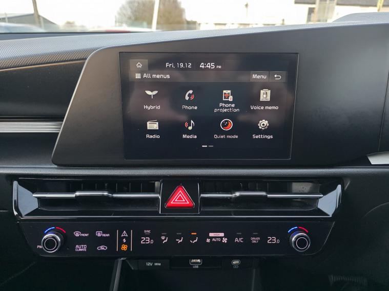 This 2022 Kia Niro h GDi 2 is a clear vehicle history example, offering peace of mind alongside its impressive features. This Euro 6 compliant model boasts a 1.6 litre petrol hybrid engine, combining efficiency with a smooth driving experience. Inside, youll find dual zone climate control for personalised comfort, and a reversing camera with dynamic guidelines integrated into the centre fascia screen, complemented by rear parking sensors for effortless manoeuvring. The dual LED headlights provide excellent visibility, while Bluetooth connectivity allows for seamless music streaming and hands free calls. The Kia Niro h GDi 2 stands out with its exceptional fuel economy, achieving a remarkable 64 miles per gallon, which indicates it is more economical than many similar vehicles. Furthermore, its low insurance group rating suggests that running costs will be more affordable. The low CO2 emissions also highlight its environmental credentials, making it a sensible choice for the conscious driver.