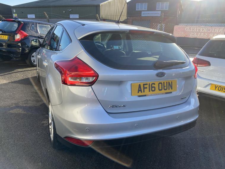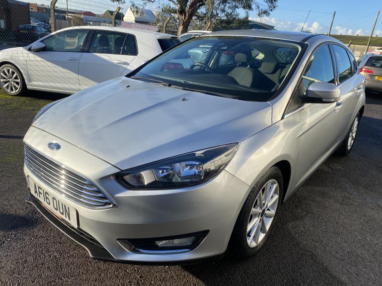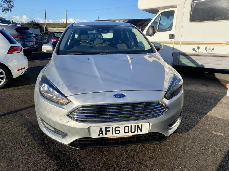 Ford Focus 1.0 Titanium 5 Door hatchback in Moondust Silver, Ford dealer plus 1 owner Only 56678 miles with a full service history and has just been serviced with a new MoT, Specification includes Digital air conditioning Alloy wheels Rear parking sensors Ford Sync 2 with a colour touch screen Bluetooth phone connection and phone streaming DAB CD Radio with auxiliary and usb ports Cruise control Trip computer Electric front and rear windows Remote central locking with 2 keys and a long list of driver assistance and safety features, A very well looked after car inside and out, 5495