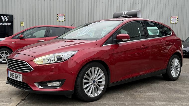 Ward Motors Leeds Used Cars Leeds are pleased to offer this Ford Focus 1.0 T EcoBoost Titanium X Red 5dr, the car is in excellent condition throughout. Perfect colour combination and a great specification too including Heated Seats Half Leather Interior, Satellite Navigation, Cruise Control, Bluetooth, DAB radio, USB point, AUX point, Heated Front Windscreen, 6 speed gearbox, Parking Sensors front & rear, reverse camera, Drivers Adjustable Armrest, Speed Display, Voice command, CD player, Electric Windows, ISOFIX, alloy wheels and much much more. The car will be supplied with 2 keys, an MOT until December 2026 and an up to date service history including 11 service stamps having just being serviced in our trusted workshop. The car has only had 1 owner from new and is also only 20 to tax per year! FINANCE NOW AVAILABLE!! FREE 3 months national cover warranty with all purchases, 500 per claim with the option to up this limit to 1, 000 per claim for only 59! Peace of mind package offer 12 months national cover warranty including breakdown cover now on offer for only 399*. WE OFFER DELIVERY Nationwide Delivery is available 7 days a week, ask for a quotation now! Finance now available same day drive away, we are now closely teamed up with Close Motor Finance, CarFinance247 and CarLoan2Day for you finance needs. We also work with Zuto, Carloans365, CarloansUK and many more outside brokers. Reserve now for only 99! Pop down and see the team at Ward Motors Leeds Used Cars Leeds located in Armley LS12 opposite Armley Park Main Entrance. Browse, Try, Buy DISCLAIMER: The above listed specification is true and correct. Any other specification listed elsewhere can sometimes be incorrect. Please check with the team to clarify this if needed prior to any purchase. Ward Motors Leeds do not warrant or re gas air conditioning hence why we do not advertise any of our cars/vans with AC/air conditioning. *Warranty 499 on 4X4 and engines above 2.2 litre. THIS CAR HAS JUST ARRIVED INTO STOCK - THE CAR IS CURRENTLY AWAITING PREPARATION - MORE IMAGES TO FOLLOW IN DUE COURSE ONCE PREPARED AND PROFESSIONALLY VALETED.