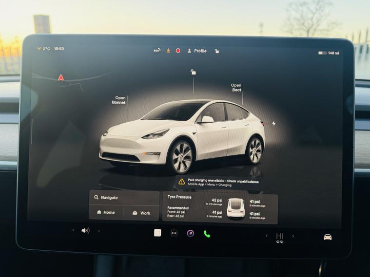 This 2022 Tesla Model Y Long Range boasts a clear vehicle history and an MOT valid until November 2026, offering peace of mind for its next owner. As a fully electric vehicle, it features a Four Wheel Drive drivetrain powered by an 85 kWh battery, capable of delivering an impressive 331 miles of range from new. Inside, youll find comfort and convenience with Dual Zone Climate Control, heated front seats, and a heated steering wheel. The expansive glass roof provides a bright and airy cabin with ultraviolet and infrared protection, while wireless phone charging keeps your devices powered up on the go. The Model Y Long Range stands out with its exceptional performance, achieving 0-60mph in just 4.8 seconds, demonstrating its dynamic capabilities. This acceleration figure is a key indicator of its superior performance compared to other vehicles in its class. Furthermore, the substantial boot space offers practicality for everyday use and longer journeys. With a full charge taking approximately 12 hours at home using a 7kW charger, and the ability to reach 80% charge in as little as 25 minutes at a public charging station, this electric SUV is designed for both convenience and efficiency.