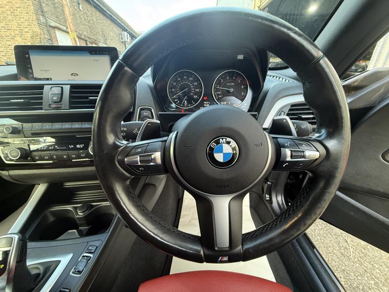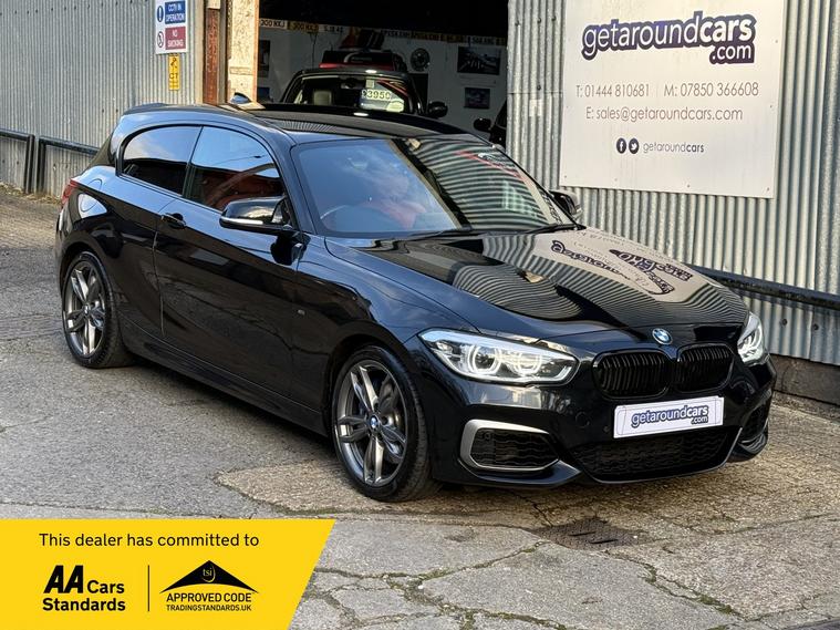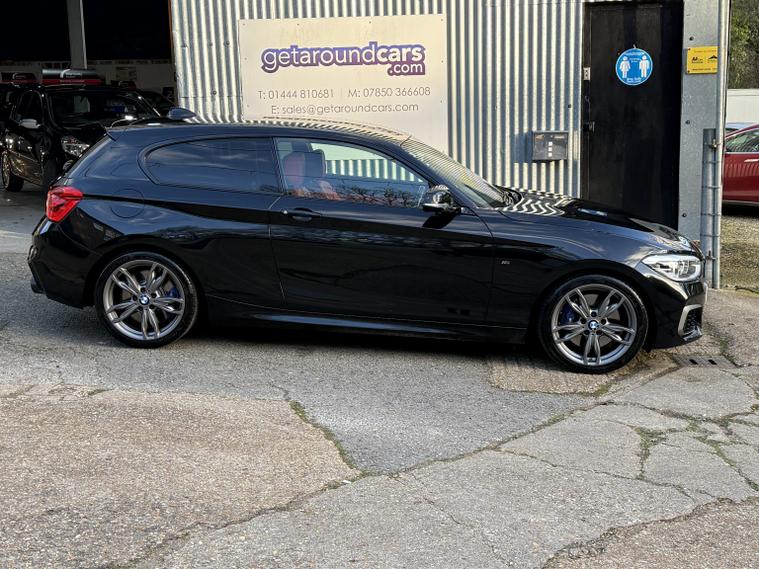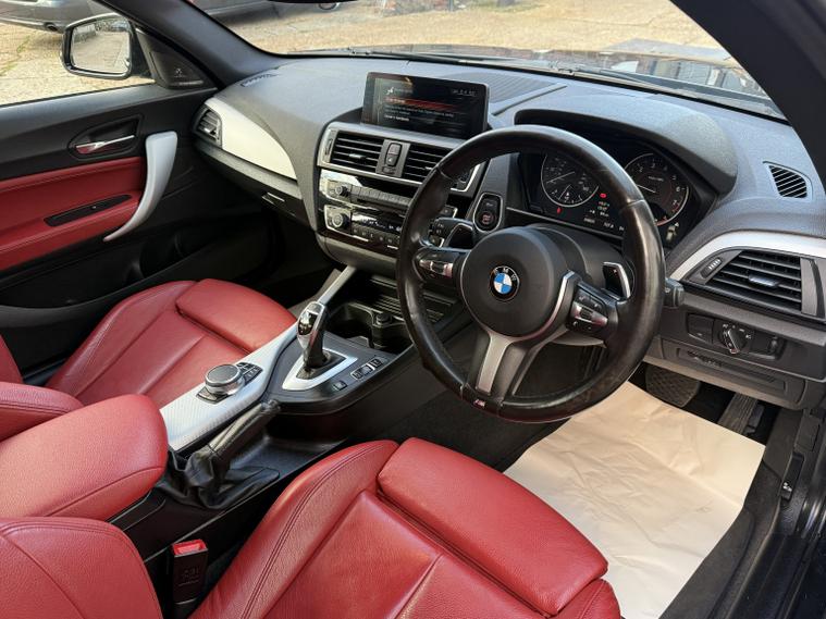 getaround in this impressive 3.0 petrol 1-series from BMW. This automatic 3-door M140i looks stunning finished in Sapphire black metallic with contrasting coral red Dakota leather interior. It has an amazing spec that includes heated steering wheel, Pro-Sat Nav, adaptive LED headlights, electric heated memory seats and climate control. The car has an impressive full BMW main dealer service history that is made up of some 8-services having covered approximately only 6-7000 miles between each service. It also has a long advisory-free MOT, in fact the car has never had an MOT advisory. This vehicle has a transferable MOT test cover, road side assistance and warranty until 2028. It comes with the owners book pack, two keys, locking wheel nut and clear HPi certificate. Phone, text or email for an appointment to view this stunning ulez compliant BMW soon.