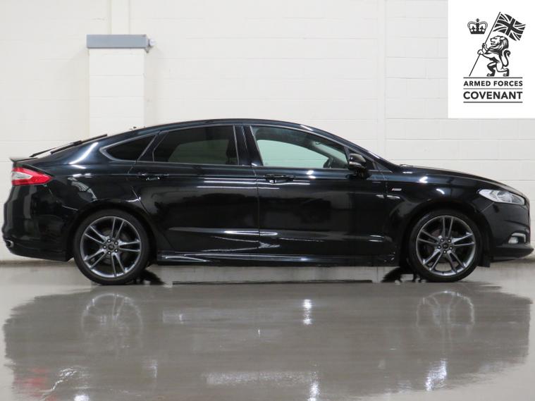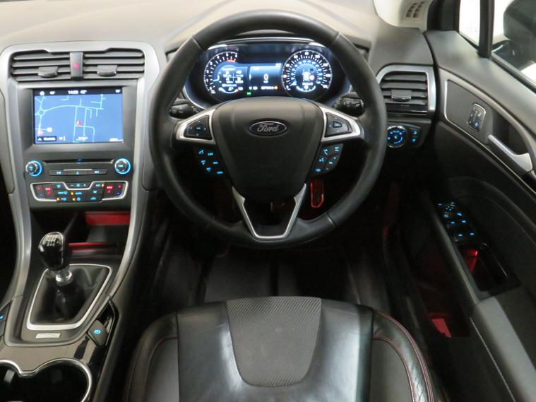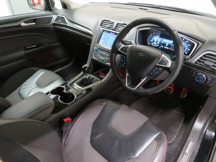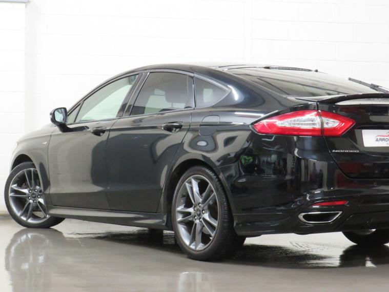 Arrow Motor Company are pleased to present this fantastic Ford Mondeo ST Line X TDCi, finished in the stunning Gloss Black Paintwork, with a Matching Partial Black Leather Interior. Equipped with Fords 2.0-Litre Diesel Engine capable of producing 178bhp whilst providing the most economical of drivers with an incredible 62.8 mpg, with potential to rise to 68.9mpg in Extra-Urban environments. This vehicle also benefits from the following impressive list of features, , Interior Features, Satellite Navigation System | 9-Inch Multi Media Touch Screen Display | Apple Carplay | Front and Rear Ultrasonic Parking Sensor Display | Dual Zone Climate Control | Rear Parking Camera Display | DAB Radio | Bluetooth Connectivity | Hill Start Assist | Lane Keeping Assist | Push Button Start | Black Leather Electrically Adjustable Heated Front Seats | Automatic Headlight Switch | Black Leather Multifunctional Steering Wheel | Eco Stop/Start System | Wi-Fi Connectivity | Valet Mode | Front and Rear Electric Window Controls | Electrically Adjustable Folding Wing Mirror Controls | Multifunctional Trip Computer | 2x USB Port | 2x Cup Holders | Electric Hand Brake | Miniature Cluster Display | Front and Rear Interior Illumination | , Exterior Features, 19-Inch 10-Spoke Metallic Grey Alloy Wheels | Front and Rear Ultrasonic Parking Sensors | Automatic Headlights | LED Day Time Running Lights | Dual Chrome Exhausts | ST Line Rear Wing | Gloss Black Rear Diffuser | ST Line Badge Branding | Chrome Lined Front Grill | Gloss Black Front Grill | Wing Mirror Mounted Indicators | Rear Privacy Glass | Body Coloured Door Handles | Body Coloured Wing Mirrors | Body Coloured Roof |