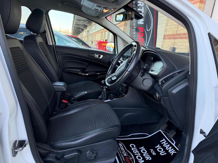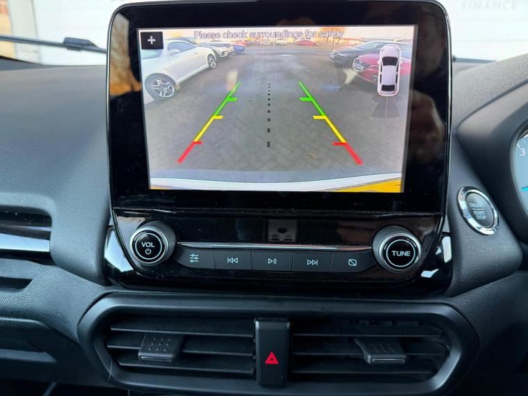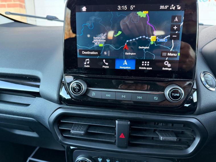This 2018 Ford EcoSport T Titanium presents an exceptional opportunity with its remarkably low mileage of just 42, 000 miles for its age. This Euro 6 compliant 1.0L petrol model boasts a clear vehicle history check, offering peace of mind to its next owner. Inside, youll find a wealth of modern conveniences, including Electronic Automatic Temperature Control for effortless climate management and the advanced Ford SYNC 3 Navigation system, complete with an 8-inch touchscreen that seamlessly integrates with Android Auto and Apple CarPlay. Further enhancing your driving experience, this EcoSport comes equipped with a Rear View Camera Pack, featuring both a rear camera and rear parking sensors to assist with manoeuvring. Automatic headlights are also included, ensuring optimal visibility in varying light conditions. The EcoSport is also noted for its low CO2 emissions, a benefit that sets it apart from many other vehicles in its class, making it a more environmentally conscious choice.