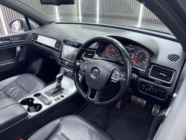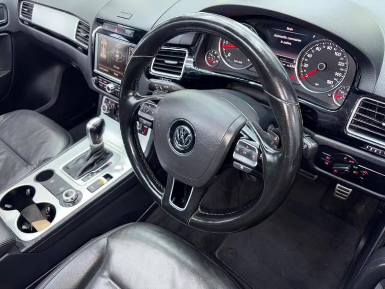 This 2014 Volkswagen Touareg TDI V6 R Line presents an exceptional opportunity with its remarkably low mileage of just 95, 000 miles for its age. This Four Wheel Drive SUV boasts a powerful 3.0 litre diesel engine, offering a compelling blend of performance and efficiency. The R Line trim ensures a premium experience, enhanced by features such as heated outer rear seats, dynamic air suspension with continuous damping control for a smooth ride, and a heated windscreen for those chilly mornings. The Touareg R Line also includes advanced driver aids like automatic distance control, which works alongside adaptive cruise control to make journeys more relaxed. Its substantial boot space makes it incredibly practical for families and adventurers alike, while its impressive 0-62mph acceleration in just 7.6 seconds demonstrates its dynamic capability. Furthermore, its low insurance group rating indicates that running costs are kept competitive, making this a sensible choice for those seeking a capable and well equipped large SUV.