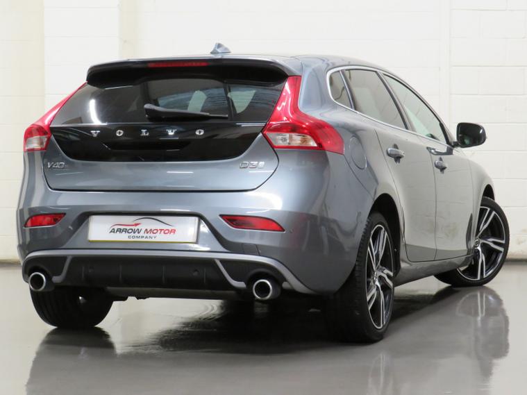 Arrow Motor Company are pleased to present this fantastic Volvo V40 D3 R-Design Pro, finished in the stunning Mussel Blue Metallic Paintwork with a Contrasting Full Black Leather Interior. Equipped with Volvos 2.0-Litre Automatic Diesel Engine capable of producing 148bhp whilst providing the most economical of drivers with an incredible 58.9mpg, with potential to rise to 68.9mpg in Extra-Urban environments. This particular Example is Complimented by Full Service History (FSH). This vehicle also benefits from the following impressive list of features:, , Interior Features, Volvo Satellite Navigation | Full Digital Cockpit Instrument Cluster | Heated Front Seats | BLIS Blind Spot Information system | Front and Rear Ultrasonic Parking Sensor Display | Auto Park Assist | Lane Departure Warning | Active High Beam | Road Sign Recognition Display | Dual Zone Automatic Climate Control | DAB Radio | Bluetooth Connectivity | Cruise Control | Automatic Headlight Switch | Speed Limiter | Voice Command | Push Button Start | Eco Stop/Start System | Frameless Rear View Mirror | 6x Speaker System | Auto Illuminating Vanity Mirrors | Electric Front and Rear Windows | Electrically Adjustable Folding Wing Mirrors | Black Leather Contrast Stitched Shifter | USB Port | 2 x 12v 120W Sockets | Deployable Black Leather Rear Arm Rest | R Design Branded Door Sills |, Exterior Features, 18-Inch Diamond Ixion Matt Black Cut Alloy Wheels | Automatic Xenon Headlights | LED Day Time Running Lights | Rear Ultrasonic Parking Sensors | Silver Wing Mirrors | Aluminium Roof Rails | Shark Fin Aerial | Silver Lined Windows | Chrome Twin Exhausts | Heated Rear Window | Body Coloured Door Handles |