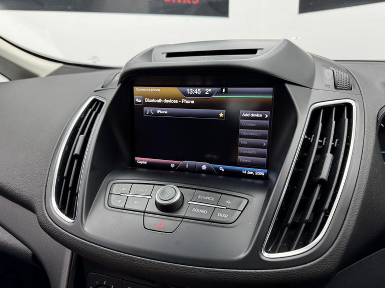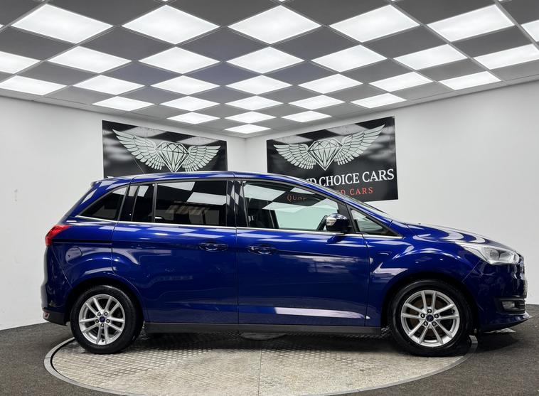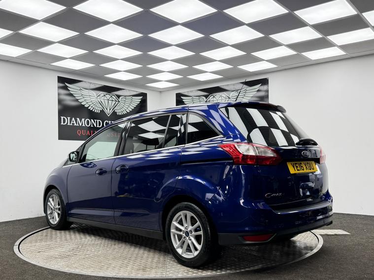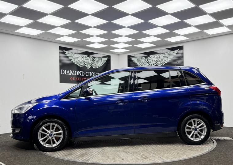 Boasting exceptionally low mileage for its age, this 2016 Ford Grand C-Max TDCi Zetec presents a superb ownership prospect with its MOT valid until May 2026 and a clear vehicle history check. This versatile 7 seater MPV is equipped with a fuel efficient 1.5L Diesel engine and meets Euro 6 emission standards. Inside, you will find manual air conditioning for comfort, a Ford DAB Audio System with Bluetooth connectivity for your entertainment needs, and rear parking sensors that include parking assistance for added convenience. This Grand C-Max stands out with its impressive fuel economy, achieving an outstanding 64 miles per gallon, which is significantly better than many other vehicles in its class. Coupled with its low CO2 emissions, this makes it an economical and environmentally conscious choice. The very low mileage of just 54003 miles further enhances its appeal, suggesting it has been well cared for and offers excellent value.