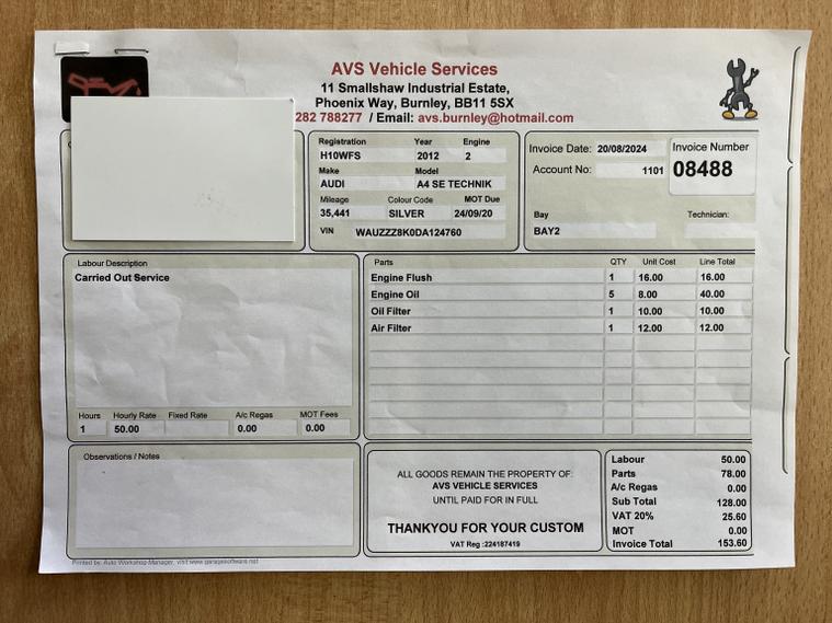 Boasting exceptionally low mileage for its age, this 2012 Audi A4 Avant TDI SE Technik presents a compelling proposition. With only two previous owners and a clear vehicle history check, this estate car has been meticulously maintained, evidenced by its full service history. The last service was completed on 15 January 2026 at 38, 467 miles, aligning with its current odometer reading of approximately 38, 000 miles. The MOT remains valid until October 2026, and a three month warranty is included for your peace of mind. This Audi A4 Avant TDI SE Technik comes equipped with desirable features that enhance the driving experience. Enjoy the convenience of Mobile Telephone Preparation with its Bluetooth interface, allowing for seamless connectivity. The Electronic 3 Zone Climate Control ensures comfort for all occupants, while the Audi Parking System Plus, incorporating front and rear sensors, along with the Acoustic Parking System rear, makes manoeuvring effortless. Its low insurance group rating further adds to its appeal, suggesting that running costs may be more economical compared to similar vehicles. Concert Radio - MP3/CD Player, Display Screen Colour 7in High Resolution, Hard Drive - 40GB, MMI Navigation Plus, Mobile Telephone Preparation - Bluetooth Interface, Single CD-DVD Player, Speakers x10 Including Subwoofer, 12V Power Socket - Centre Console, 12V Power Socket - Luggage Compartment, AMI - Audi Music Interface, AUX-IN Socket, Audi Sound System, Colour Drivers Information System - DIS, Cruise Control, Rear Parking Sensors, Rest Recommendation System, Voice Control - Navigation, Audi Parking System Plus, Door Mirrors - Electrically Adjustable and Heated, Electric Windows - Front and Rear, Exterior Aluminium Package, Radiator Grille - Single Frame - with Stone Grey Horizontal Bars, Roof Rails in Bright Finish, Space Saver Spare Wheel, 17in Alloy Wheels - 5-Spoke Design, Acoustic Windscreen, Anti Theft Locking Wheel Bolts, Daytime Running Lights, Front Fog Lights, Halogen Headlights, Headlights - Automatic Adjustment, Headlights - Coming-Leaving Home Function, Door Sill Trims - Aluminium Optic, Front Centre Armrest, Front and Rear Floor Mats, Headlights - Range Adjustment, Inlays - Aluminium Trigon, Interior Chrome Package, Rear Armrest, Seats - Drivers Manual Height Adjustment, Split-Folding Rear Seats, Steering Wheel - 4-Spoke Leather-Multi-function, Steering Wheel - Height and Reach Adjustable, Steering Wheel - Multi-function, TP Memo - Automatically Saves Traffic News, Tool Kit, Auto-Dimming Rear-View Mirror, Automatic Wipers with Rain Sensor, Car Jack, Climate Control - Electronic 3-Zone, Electromechanical Power Steering, ESP - Electronic Stability Programme, Electromechanical Parking Brake, First Aid Kit, Front Passenger Airbag Deactivation Switch, ISOFIX Child Seat Preparation Front and Rear, Immobiliser, Misfuelling Inhibition, Remote Central Locking, Warning Triangle, ABS - Anti-Lock Braking System, Airbags - Driver, Airbags - Front Passenger, Airbags - Front Side, Airbags - Head System, Alarm - Thatcham Category 1