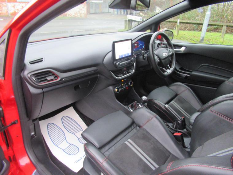 This 2022 Ford Fiesta ST-3 boasts exceptionally low mileage for its age, having covered just 18000 miles. This particular model is powered by a dynamic 1.5L petrol engine, meeting Euro 6 emission standards. It comes equipped with a range of convenient features, including rear parking distance sensors for easier manoeuvring, and electronic automatic temperature control for a comfortable cabin environment. Youll also appreciate the automatic headlights, which adjust to changing light conditions, and the Ford Key Free system, allowing for keyless entry and start. The ST-3 trim level offers an exhilarating driving experience, highlighted by its impressive 0-62mph acceleration time of just 6.5 seconds, demonstrating its superior performance compared to other vehicles in its class. Connectivity is seamless thanks to the SYNC 3 system, which includes navigation, Android Auto, Apple CarPlay, and wireless phone charging, ensuring you stay connected and entertained on every journey. These features collectively make this Ford Fiesta ST-3 a compelling choice for those seeking a sporty yet practical hatchback.
