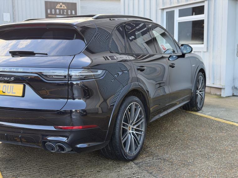 Porsche Cayenne Turbo S E-Hybrid, 2021 (21) (comes with V8OUL plate - V8 Soul), only 23, 000 miles, 2 service records (all Porsche), HPI clear, 2 keys, long MOT, Porsche warranty until October 26. A stunning example of these brilliant and mega powerful Cayenne Turbo S. Finished in the black with the 22 wheels in diamond cut it looks absolutely stunning. We bought the car directly from its previous owner, who part exchanged it against an Audi SQ7 we had in stock due to a change in works needs. The condition of the car is stunning throughout. All four alloy wheels are in excellent condition and all four tyres have lots of life remaining and are a premium brand. Mechanically it is excellent too, it drives superbly. The spec on this Cayenne is very desirable as well: Burmester sound system, PDCC, thermal insulated glass, ioniser, soft close doors, sports exhaust, panoramic roof, heated seats front and rear, tinted windows, sport tailpipes, electric/heated seats, powerfold mirrors, keyless entry and start, auto lights, head-up display, high beam assist, drive select modes, lane departure system, blind spot warning, auto wiper, digital dash, DAB radio, navigation, CarPlay, 360 degree camera, climate control, electric windows, electric/powerfold mirrors, electric drivers seat, auto lights, Bluetooth, voice control, cruise control, parking sensors, drive select modes and much more. A lovely example all round, if you are looking for a well specd, low mileage, stunning example, you wont be disappointed with this one. Viewings are by appointment only, part exchange and finance are both possible, we can also deal with you remotely should you wish by providing part exchange valuations, remote finance and paperwork signing. All cars are supplied with a 3 month warranty. 79, 995