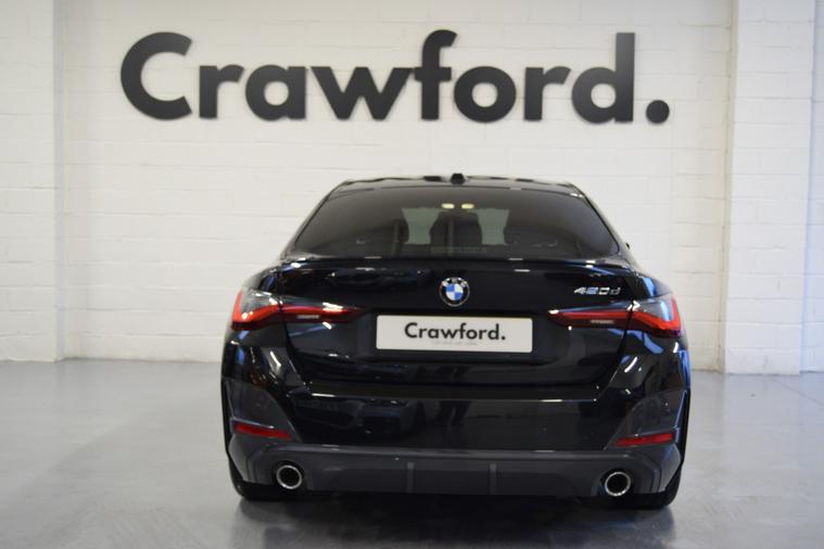 Boasting exceptionally low mileage for its 2022 registration, this BMW 4 Series Gran Coupe 420d M Sport presents a superb ownership proposition. This Euro 6 compliant vehicle features a sophisticated 2.0L Diesel Hybrid engine and benefits from a clear vehicle history check, with its MOT valid until May 2026. The M Sport trim enhances its appeal, and you can drive with confidence thanks to the Incorrect Fuelling Protection System and Mild Hybrid Technology. Experience effortless parking with front and rear Park Distance Control, complemented by a Rain Sensor that automatically activates the headlights. Inside, the BMW Live Cockpit Professional with Bluetooth connectivity keeps you informed and entertained. This Gran Coupe also offers generous boot space, making it a practical choice for everyday use and longer journeys, highlighting its advantage over many other vehicles in its class.