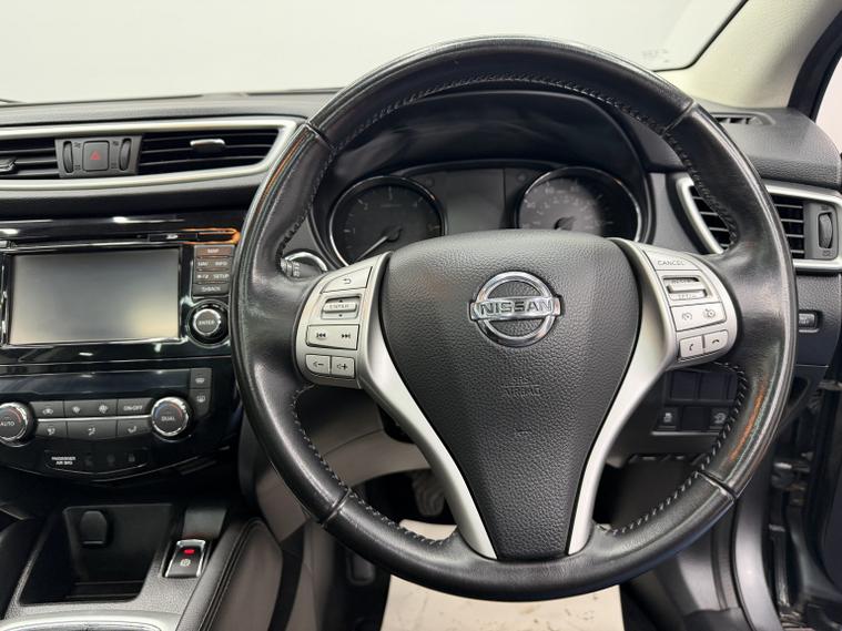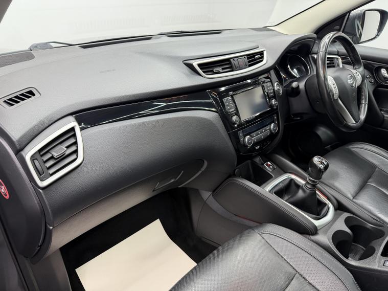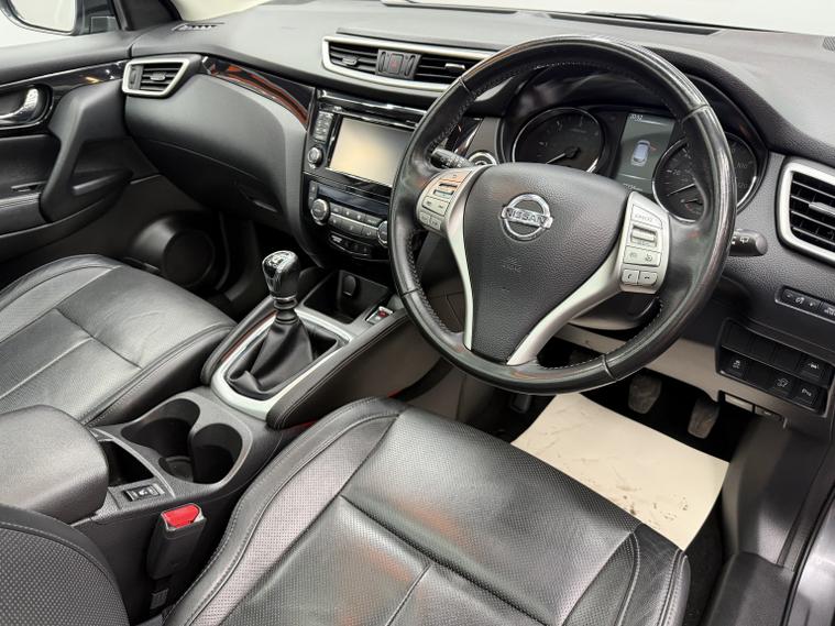 This 2015 Nissan Qashqai 1.5 dCi Tekna offers an excellent ownership history with just two owners from new and a low mileage of 77, 234 miles for its age. Powered by a Euro 6 compliant diesel engine, it delivers an ideal balance of efficiency, comfort, and everyday practicality, enhanced by the highly sought-after Tekna specification. The interior is well equipped, featuring heated front seats for added comfort, dual-zone climate control to suit both driver and passengers, and satellite navigation for stress-free journeys. The panoramic glass roof with fixed sunroof fills the cabin with natural light, creating a bright and spacious atmosphere. Parking and manoeuvring are effortless thanks to rear parking sensors and Nissans Around View Monitor, providing a 360-degree birds-eye view of your surroundings. Externally, the car is finished in metallic paint and sits on striking 19-inch alloy wheels, which have recently been refurbished, further enhancing its appearance. With an impressive fuel economy of up to 71 mpg, low CO emissions, and a low insurance group, this Qashqai is economical to run and environmentally considerate. It has been well maintained with a full service history and comes complete with 2 keys. Mileage: 77, 234 miles, Owners: 2 from new, Service History: Full, Keys: 2, Wheels: 19 alloys (recently refurbished), Price: 6, 995, Finance available, Part exchange welcome, A superb example of the Nissan Qashqai Tekna, offering comfort, technology, and efficiency in a stylish and practical package.