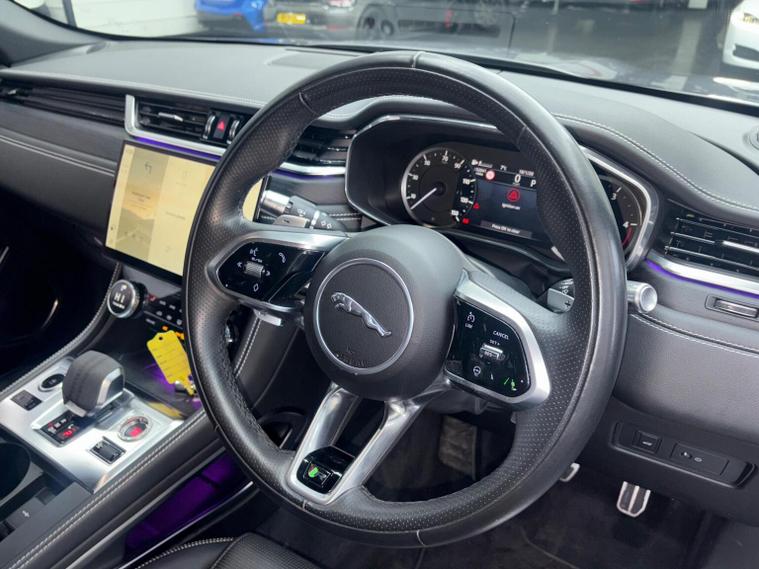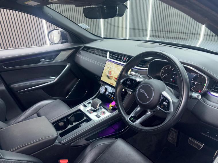 This 2022 Jaguar F-PACE D200 R-Dynamic SE offers a compelling blend of performance and practicality. As a Euro 6 compliant model, it features a robust 2.0L diesel engine paired with a smooth Four Wheel Drive system, ensuring confident handling in various conditions. The R-Dynamic SE trim level enhances its sporty appeal, while notable features such as the 3D Surround Camera with 360 Degree Parking Assistance and Premium LED Headlights with Signature Daytime Running Lights provide advanced visibility and convenience. Further driver aids include Blind Spot Assist and Front and Rear Parking Aid, making manoeuvring and navigating busy roads simpler. Experience impressive efficiency with a highlighted fuel economy of 44 mpg, alongside low CO2 emissions, making this F-PACE a considerate choice. Its acceleration from 0-60mph in just 7.6 seconds indicates a responsive driving experience, outperforming many similar vehicles. Additionally, the generous boot space ensures ample room for luggage, shopping, or equipment, catering to both everyday needs and longer journeys. With a substantial towing weight of 2400 kg, this Jaguar F-PACE is also well equipped for towing caravans or trailers.