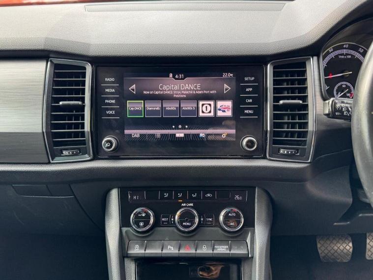 This 2017 Skoda Kodiaq TSI SE is presented with a full service history and a clear vehicle history check, offering peace of mind for its next owner. This Four Wheel Drive model features a 1.4 litre Euro 6 compliant petrol engine and is equipped with desirable SE trim. Inside, youll find stylish Black fabric leather upholstery complemented by a Colour Multifunction Trip Computer. Practicality is enhanced with silver roof rails and 18 inch Trinity alloy wheels, while parking is made easier with front and rear parking sensors. The Kodiaq TSI SE offers a compelling blend of performance and practicality. Its 0-60mph acceleration in just 9.6 seconds demonstrates its capable performance, a strong indicator of its quality compared to similar vehicles. Furthermore, its large boot space provides ample room for luggage or shopping, setting it apart from many other cars in its class. This vehicle also benefits from a low insurance group, making it an economical choice. A 6 month warranty is included, and the MOT is valid until September 2026, with the last service completed on 12th December 2025.