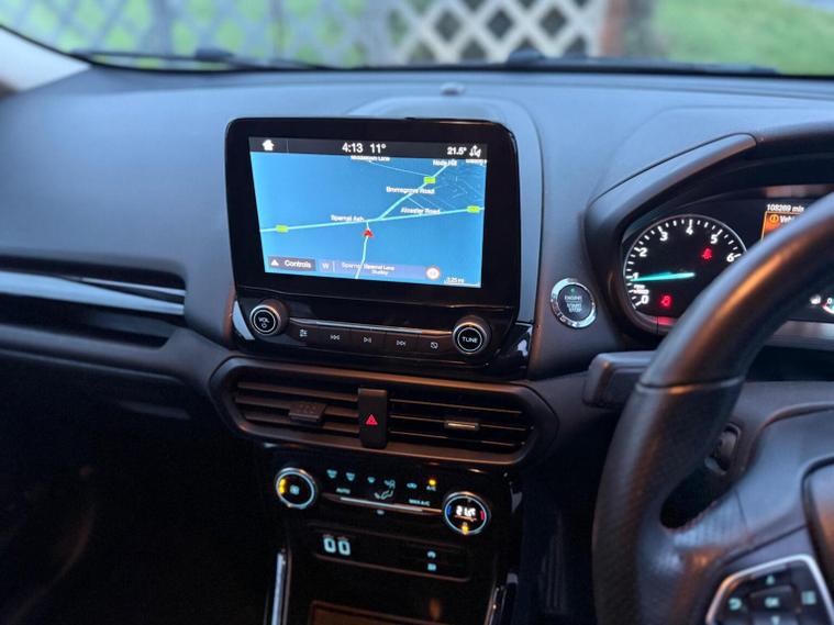 With an MOT valid until January 2027 and a full service history, this 2019 Ford EcoSport T ST-Line offers excellent peace of mind. This Euro 6 compliant 1.0L petrol model, presented in the sporty ST-Line trim, boasts a comprehensive service record with its last service completed on 2026-01-14 at 108161 miles. Inside, youll find comfort and convenience with Electronic Automatic Temperature Control air conditioning and the advanced Ford SYNC 3 Navigation system, complete with an 8-inch touchscreen supporting Android Auto and Apple CarPlay. Parking is made easier with the Rear View Camera Pack, including rear sensors and a camera, while automatic headlights ensure optimal visibility. This Ford EcoSport stands out with its impressive fuel economy, achieving a highlight of 47 mpg, which indicates it is more economical than many similar vehicles. Furthermore, its low CO2 emissions contribute to a more environmentally conscious drive. These factors, combined with its well maintained provenance and desirable ST-Line features, make this EcoSport a compelling choice for those seeking a practical and well equipped compact SUV. We are an independent dealer based in Studley Warwickshire just 10 minutes from Junction 3 of the M42 . We have over 25 years experience and pride ourselves on our customer service. DRIVE AWAY INSURANCE AVAILABLE , Most of our cars are sourced from Main dealers and NOT Auctions , ALL vehicles come with a comprehensive warranty which includes roadside assistance , Credit /Debit cards accepted, delivery available and booking an appointment is advised .