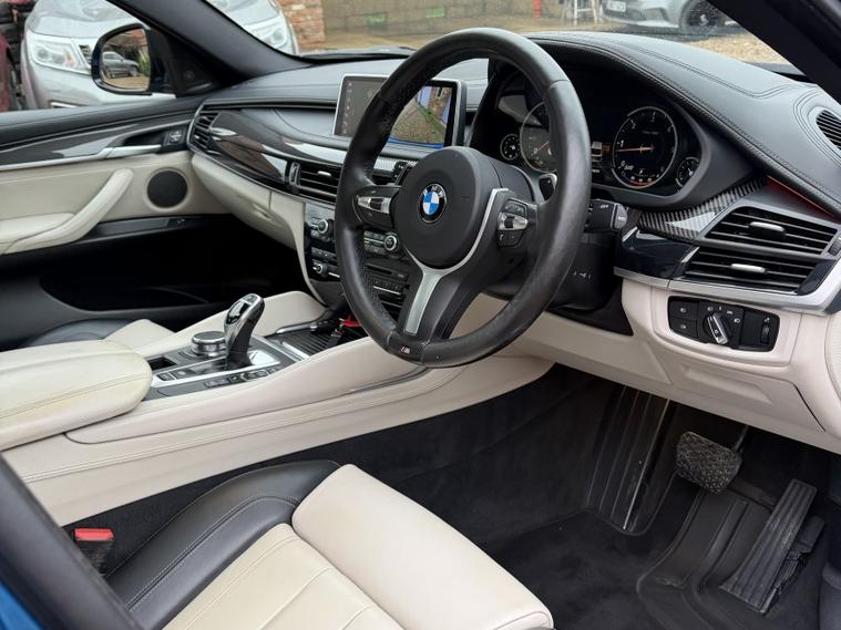 FINANCE AVAILABLE...PART EXCHANGE WELCOME, *3 MONTHS WARRANTY AS STANDARD or upgrade to RAC EXTENDABLE WARRANTY*, Priory motors are pleased to offer this stunning example of a BMW X6 40D M Sport Plus xDrive presented in Long Beach Blue Metallic with Satin Anthracite and diamond cut 21 inch alloy wheels and great tyres. Specification;, 2 keys, Dual Climate control with AC, Auto lights and wipers, Comfort Heated Electric Memory Black and Ivory Extended Napa Leather Seats, Heated steering wheel, Rear heated seats, Professional Wide screen with Satellite Navigation, Sunroof, Front and rear Electric windows, Front and rear parking sensors with 360 Cameras, DAB/CD/MP3 player, Tyre pressure monitoring system, Multi function steering wheel, Cruise control and speed limit, Removable tow bar plus much more. Full and upto date BMW Main dealer Service History!, *VIEWING BY APPOINTMENT ONLY*