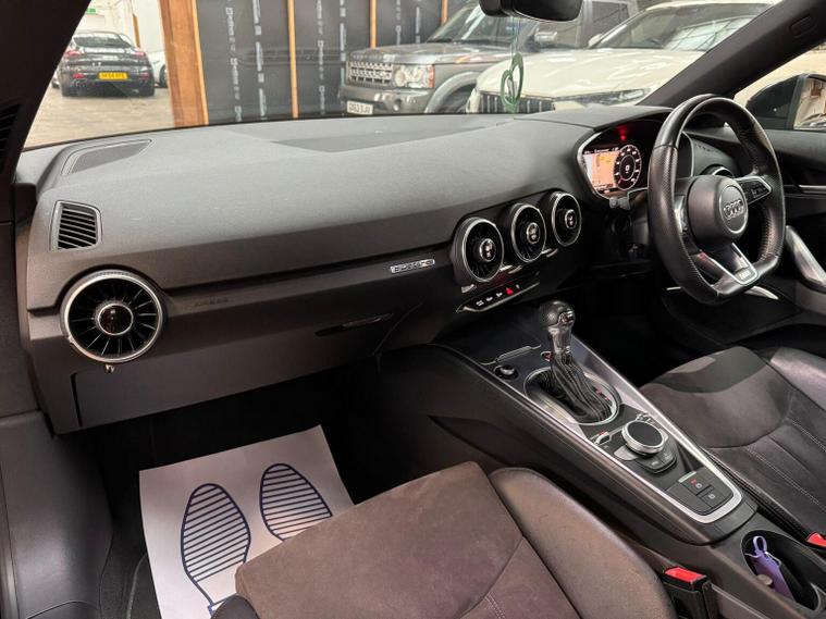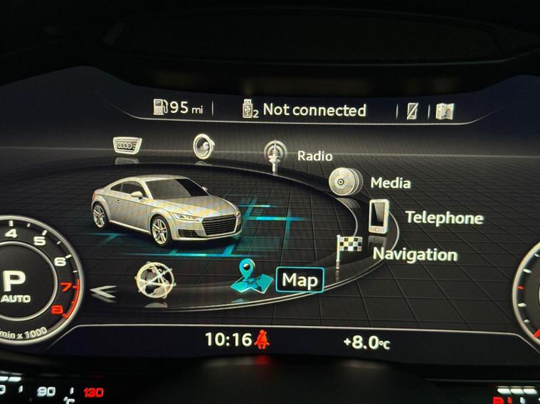 This 2016 Audi TT TFSI S line boasts exceptionally low mileage for its age, having covered just 40, 597 miles. This four wheel drive coupe, equipped with a 2.0 litre petrol engine, meets Euro 6 emissions standards. It comes with a 6 month warranty for your peace of mind and its MOT is valid until November 2026. Notable features include striking 19 inch five spoke blade design alloy wheels, deluxe automatic air conditioning with integrated digital displays, and a premium Bang and Olufsen sound system. The advanced key allows for keyless entry, and you can experience superior visibility with the Audi Matrix LED headlights. This Audi TT TFSI S line offers an impressive fuel economy of 43 miles per gallon, a highlight that demonstrates its efficiency compared to similar vehicles. Its low CO2 emissions further contribute to its economical and environmentally conscious profile. This combination of performance, advanced technology, and excellent condition makes this Audi TT a compelling choice.