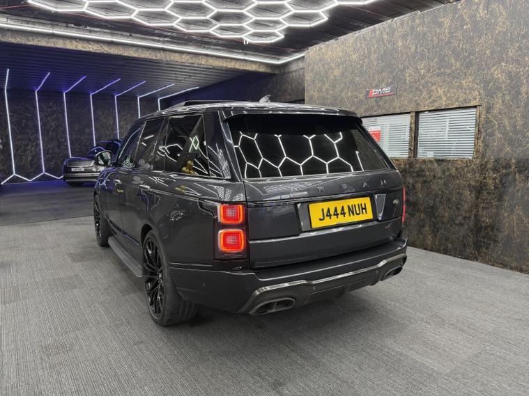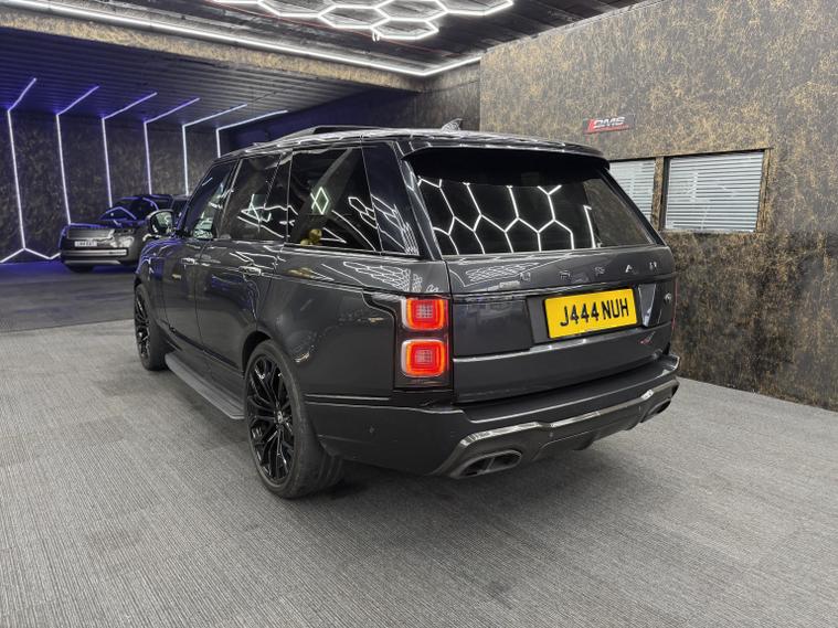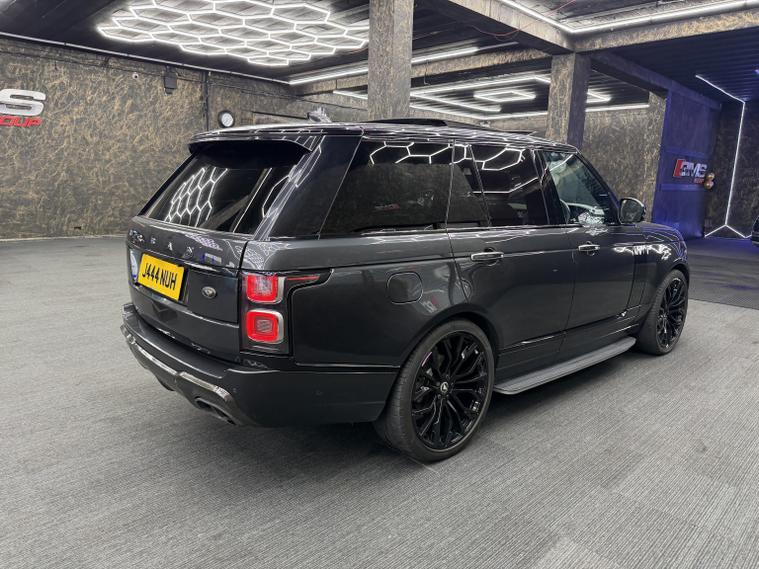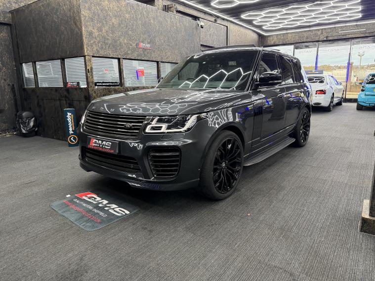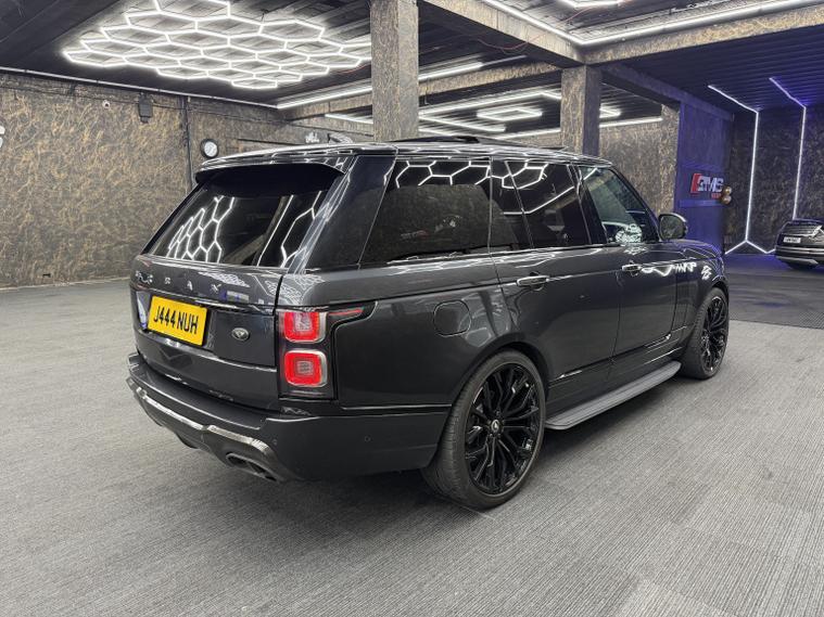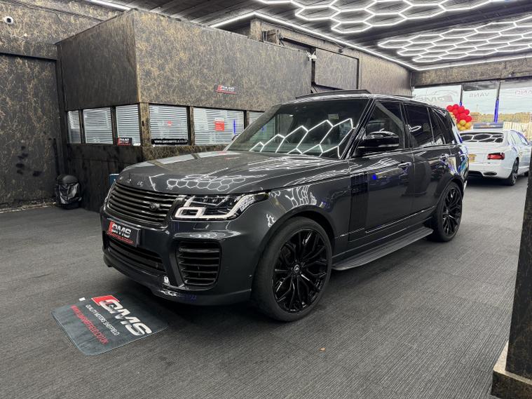This 2018 Land Rover Range Rover TD V6 Autobiography Urban body kit, front carbon urban grill and bumper, rear carbon urban splitter, This impressive vehicle features a powerful 3.0L Diesel engine paired with a Four Wheel Drive drivetrain, ensuring capability in various conditions. As a Euro 6 compliant model, it meets stringent emission standards. The Autobiography trim level signifies a high standard of luxury and refinement, complemented by notable features such as Adaptive Cruise Control with Queue Assist, Front and Rear Parking Aid, Auto Dimming Exterior Mirrors, Remote Park Heat with Timed Climate, and Four Zone Climate Control. With a substantial towing weight of 3500 kg, it is well equipped for a variety of tasks. The spacious boot offers ample room for luggage or equipment, making it a practical choice for families or those with active lifestyles. The Range Rover TD V6 Autobiography accelerates from 0 to 60mph in a swift 7.5 seconds, demonstrating its strong performance. These highlights, including its impressive acceleration and extensive comfort features, position this vehicle as a superior option compared to other similar models on the market, offering a blend of performance, luxury, and practicality.