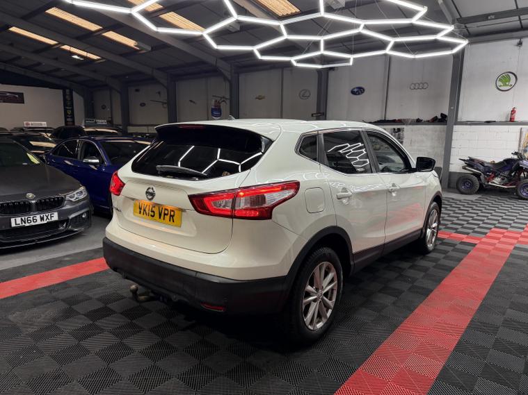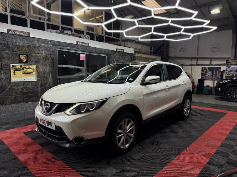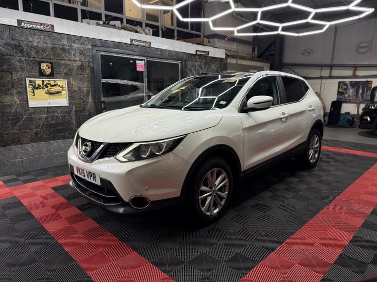 This 2015 Nissan Qashqai dCi Acenta Premium is a well maintained example, having had only two owners and boasting an MOT valid until June 2026. Under the bonnet lies an efficient 1.6 litre diesel engine, offering an impressive fuel economy of 64 miles per gallon. The Acenta Premium trim level ensures a comfortable and convenient driving experience, featuring dual zone climate control to keep everyone happy, automatic headlights for effortless visibility, and a fixed panoramic glass roof that floods the cabin with light. Parking is made simpler with both rear parking sensors and a rear view camera, providing excellent assistance. This Qashqai stands out with its excellent running costs, being in a low insurance group and producing low CO2 emissions, which indicates it is more economical to own and run than many similar vehicles. The combination of its frugal 1.6L diesel engine, impressive 64 mpg fuel economy, and these cost saving factors make it a sensible choice for everyday driving.